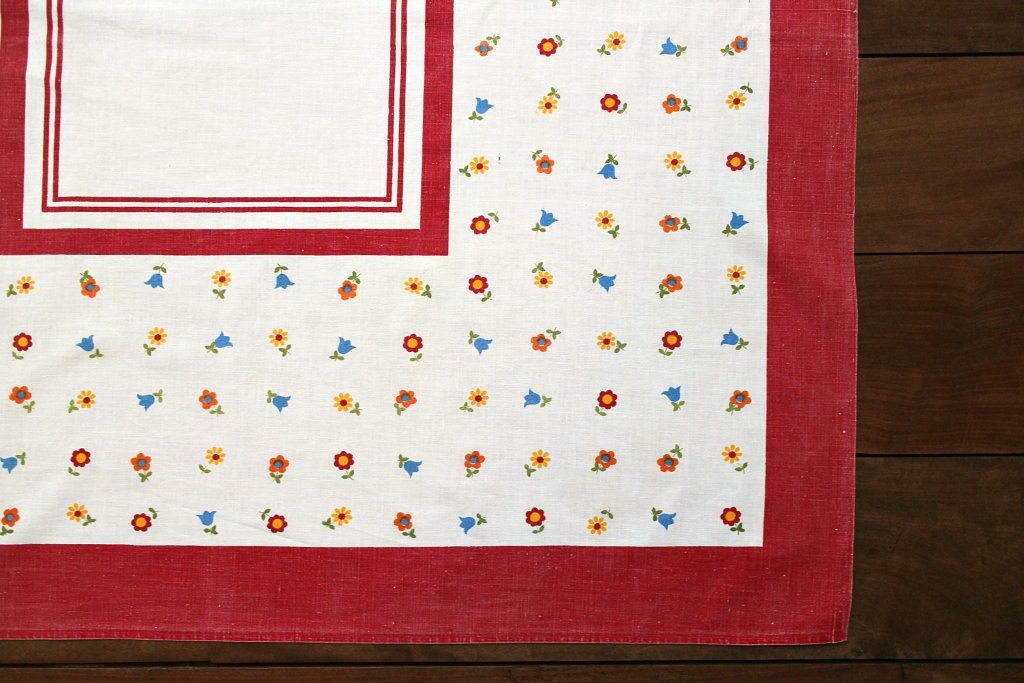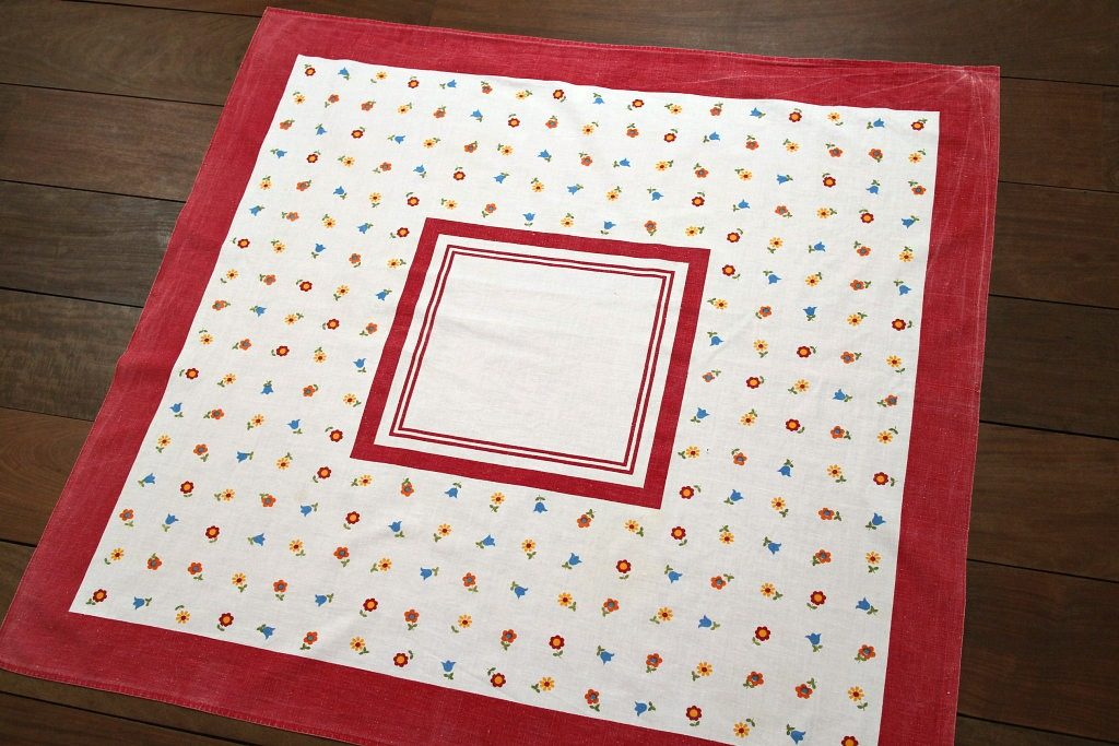 パステルフラワーの赤色ヴィンテージテーブルクロス 77 x 82cm