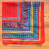 ベルリンの蚤の市で見つけた色彩豊かなレトロなスカーフ。 鮮やかな赤色とブルーを主とした、サイケデリックモチーフ入り。 異なる絵柄を並べた異国情緒あふれるデザインです。
