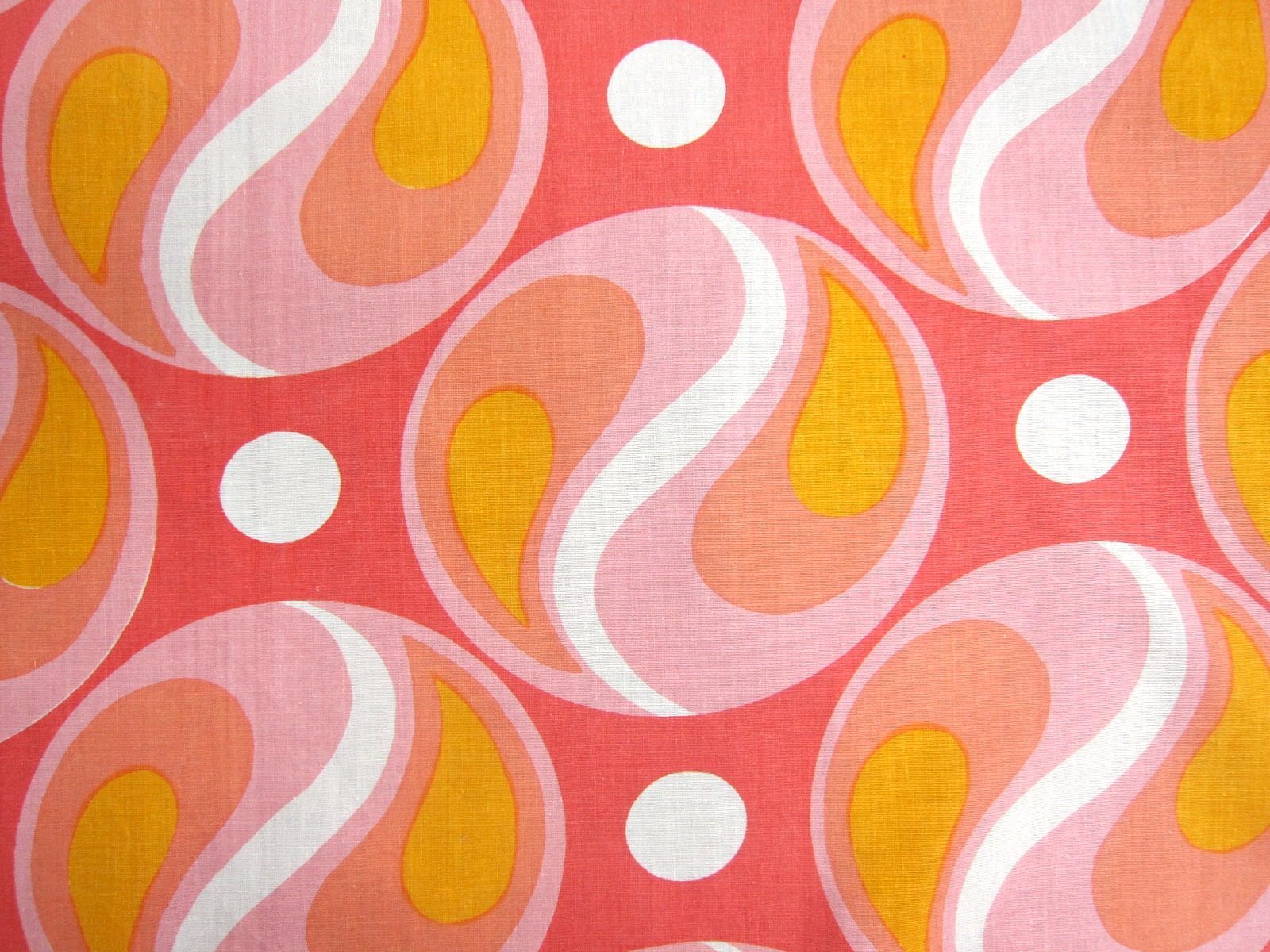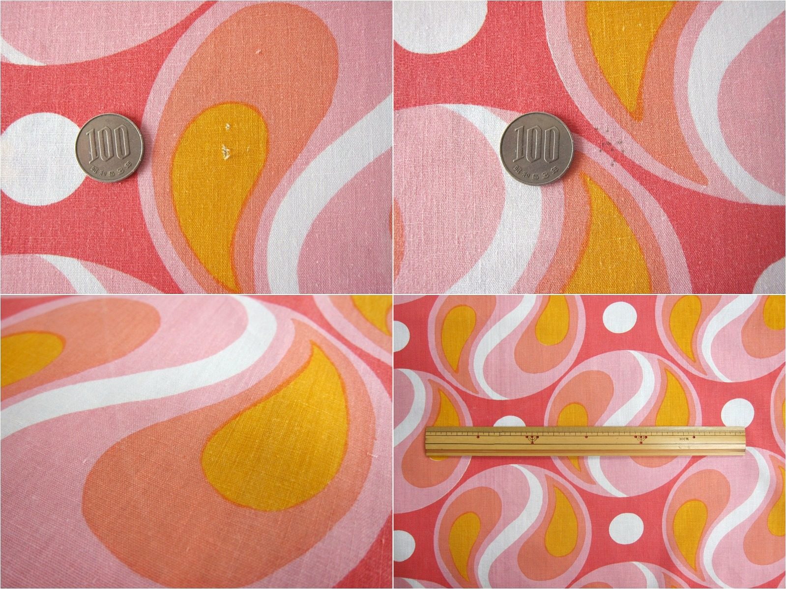 コンテンツにスキップピンクと黄色の幾何学模様、70年代オリジナルヴィンテージファブリックです。