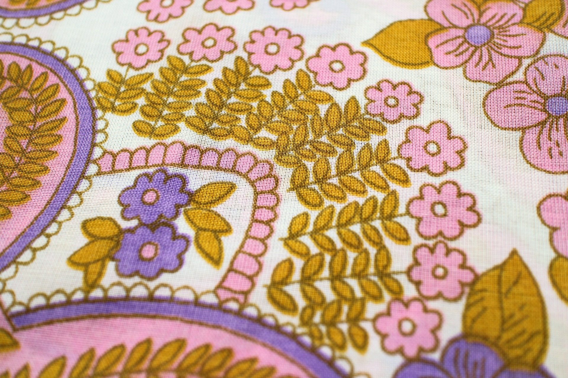 コンテンツにスキップサイケデリックにアレンジされた今にも動き出しそうなフラワープリントが独特な、旧東ドイツ時代のヴィンテージファブリック。