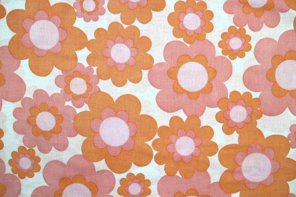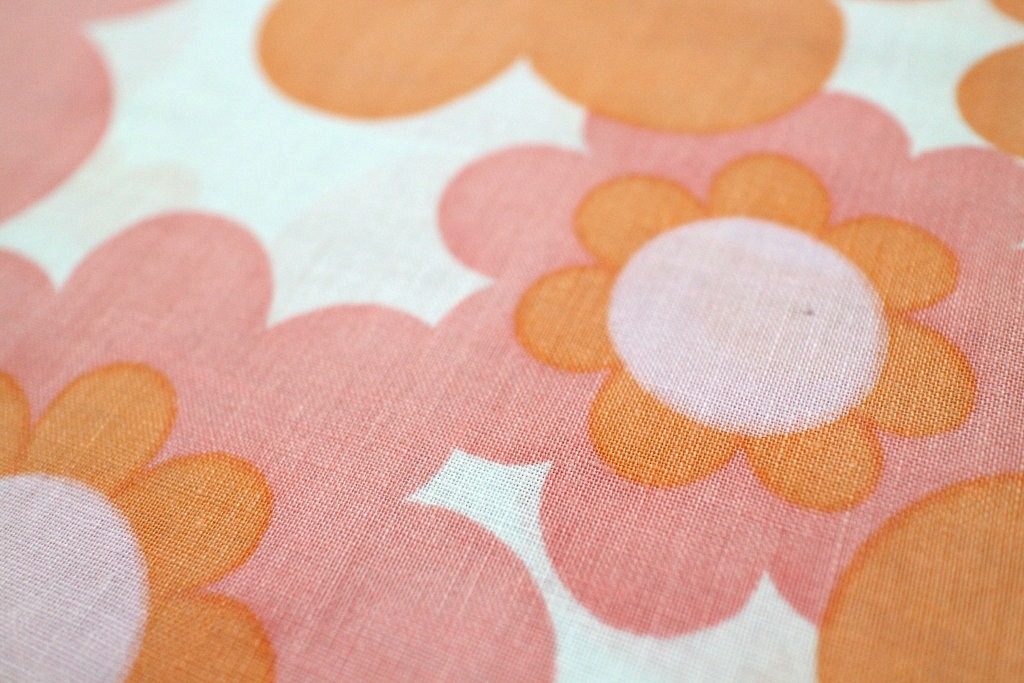 大判サイズのポップフラワーがプリントされた70年代のレトロファブリック。