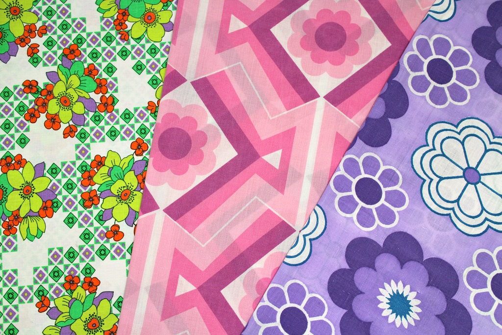 コンテンツにスキップピンク・パープル系レトロな花柄ヴィンテージカットクロス中サイズ3枚セット