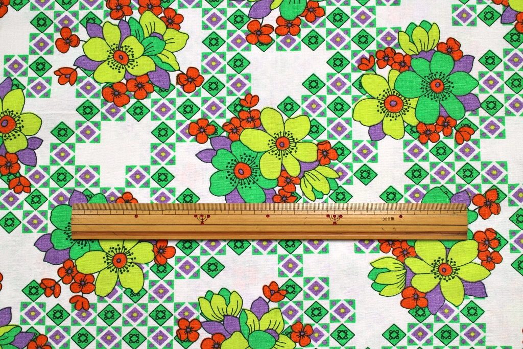 1. グリーン系フローラル柄(コットン) 幅120cm x 30cm