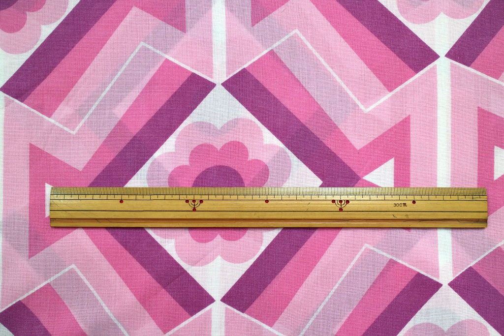 2. ピンクの幾何学フラワーモチーフ(化繊混紡) 幅130cm x 30cm