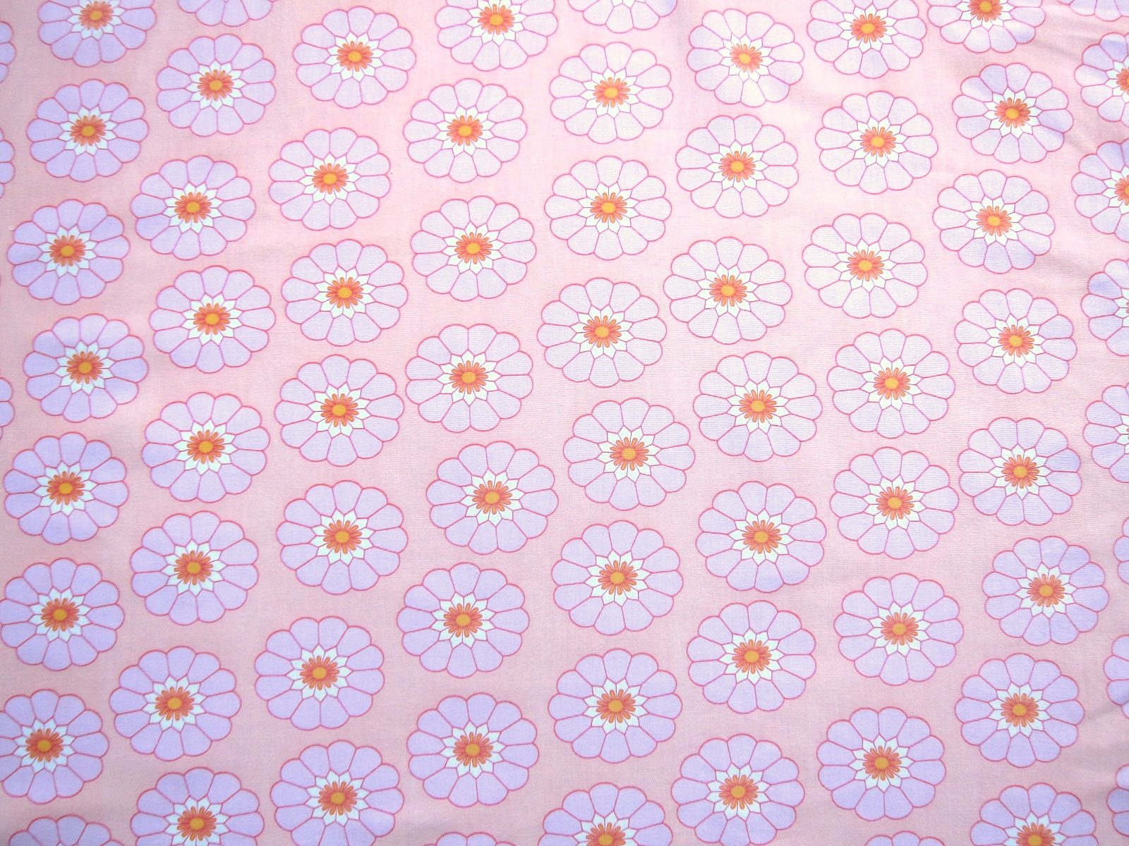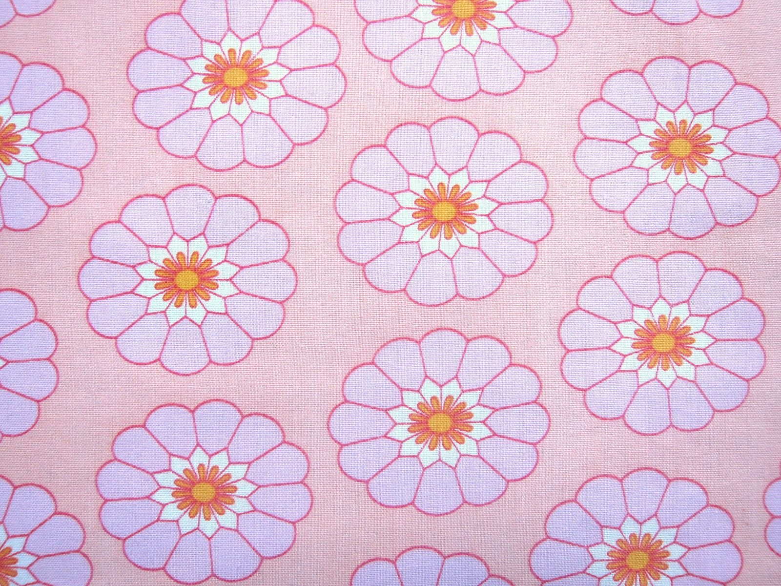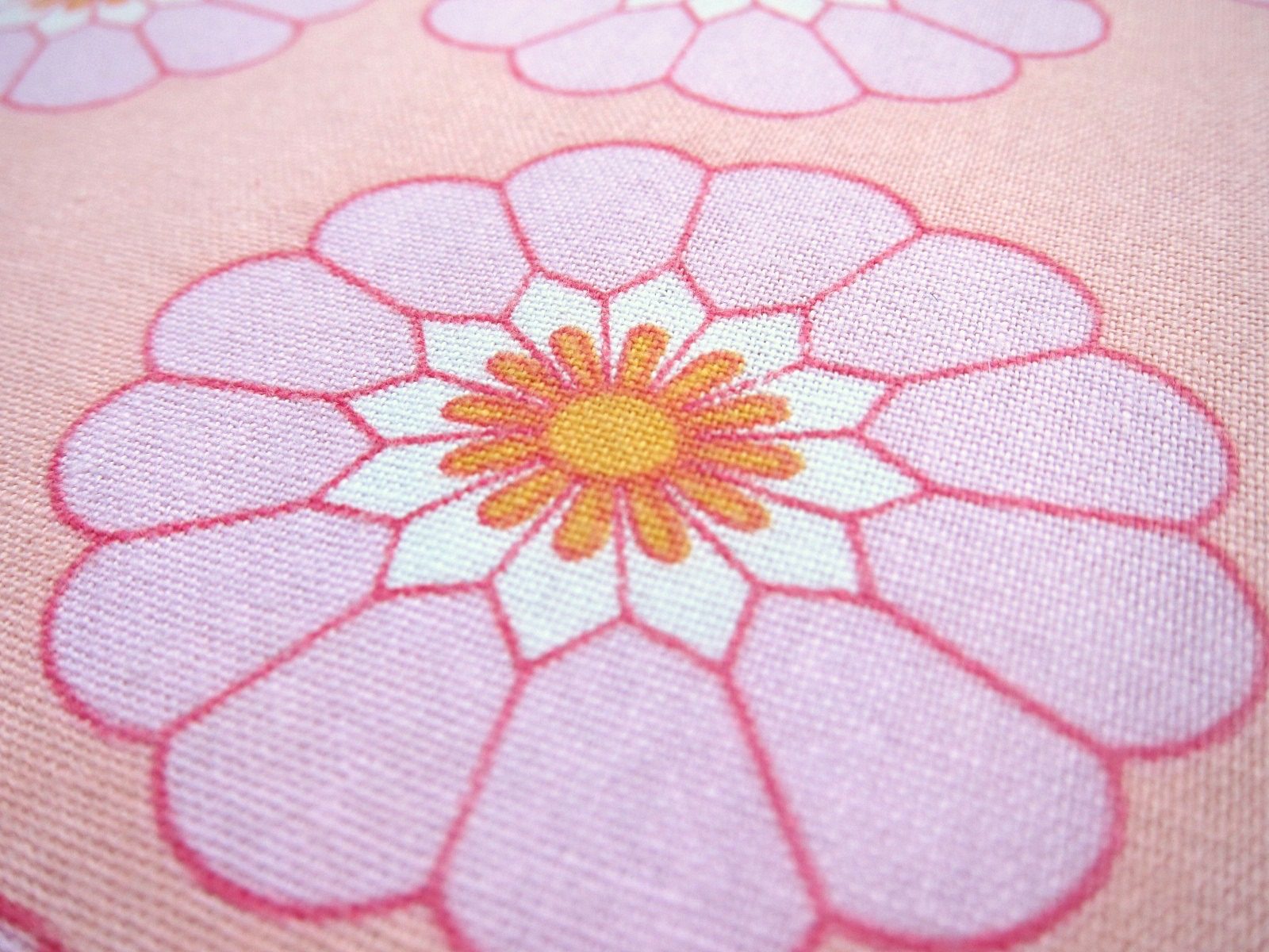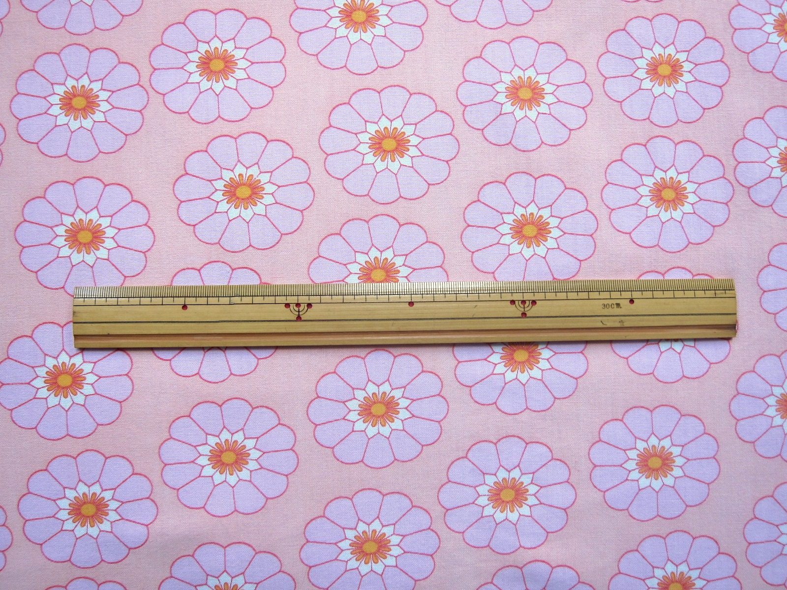 コンテンツにスキップピンク色のレトロ花連続モチーフ柄 ヴィンテージ布 幅126cm