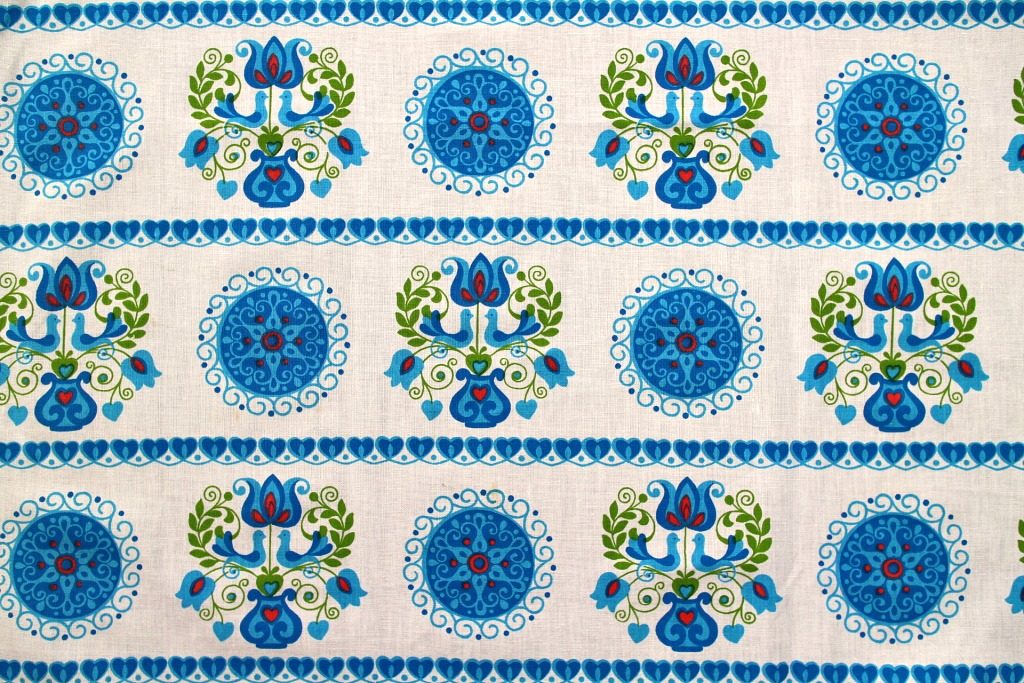 オランダ発のヴィンテージファブリックdekoplus。シンボリックなお花がモチーフとなった民族調デザインで白x青の涼しけな組み合わせが粋。