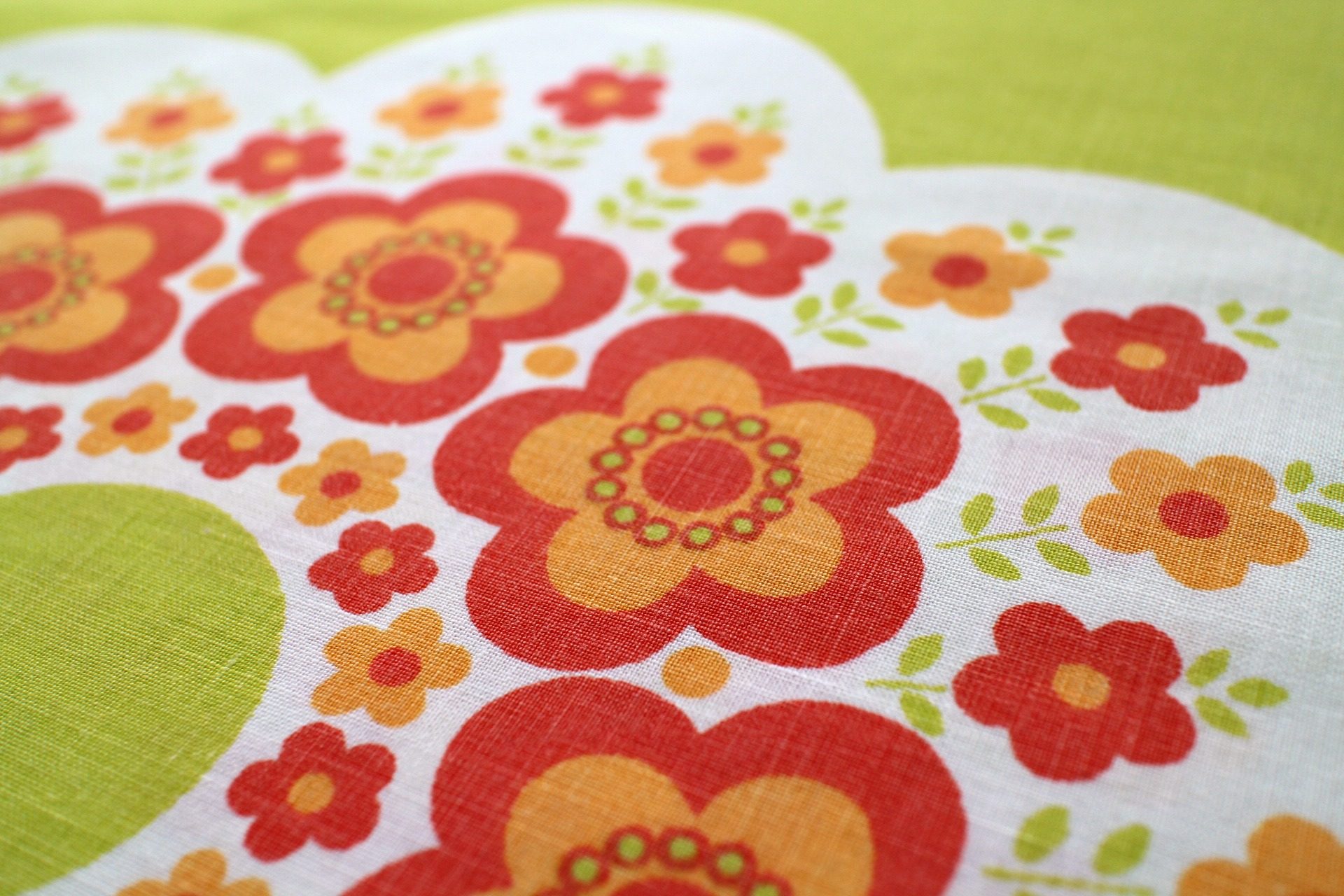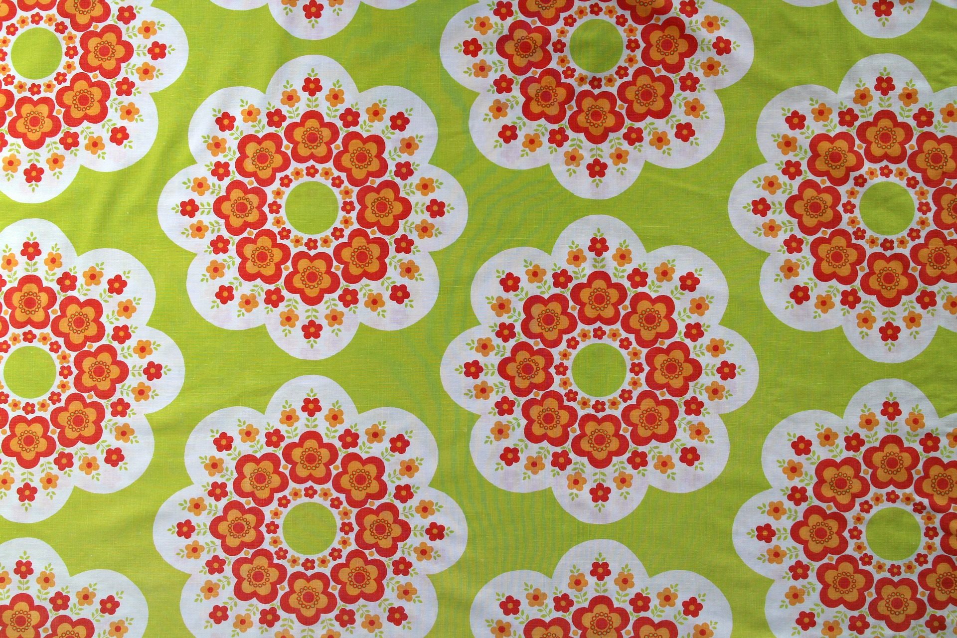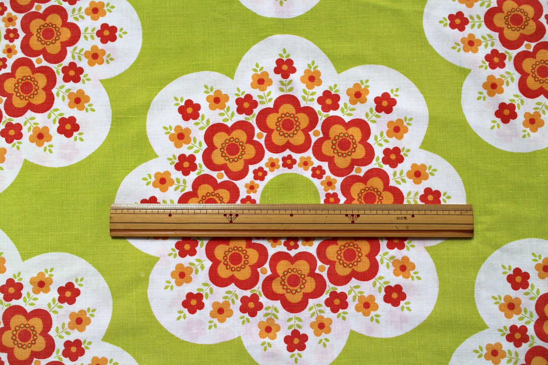 コンテンツにスキップポップなお花を大小並べてさらに大きなお花を形成した、見事なフラワーパターンがユニークなヴィンテージファブリック。