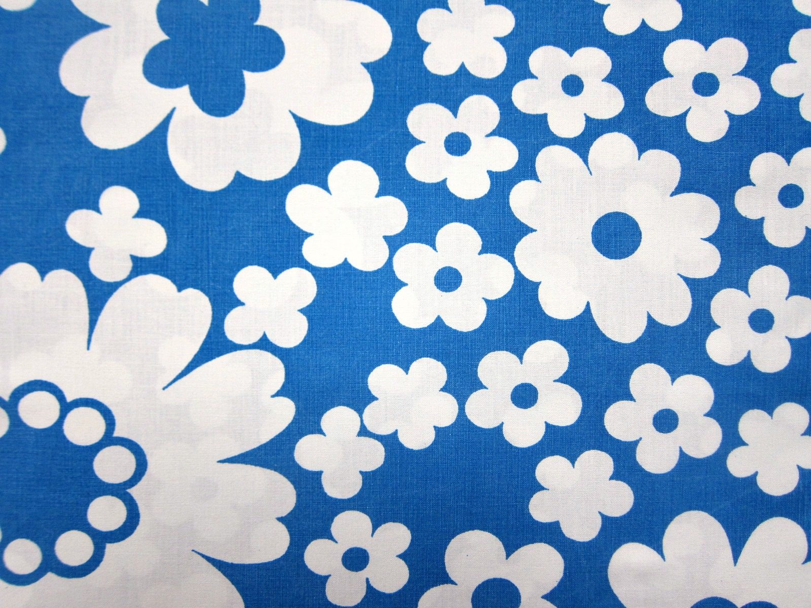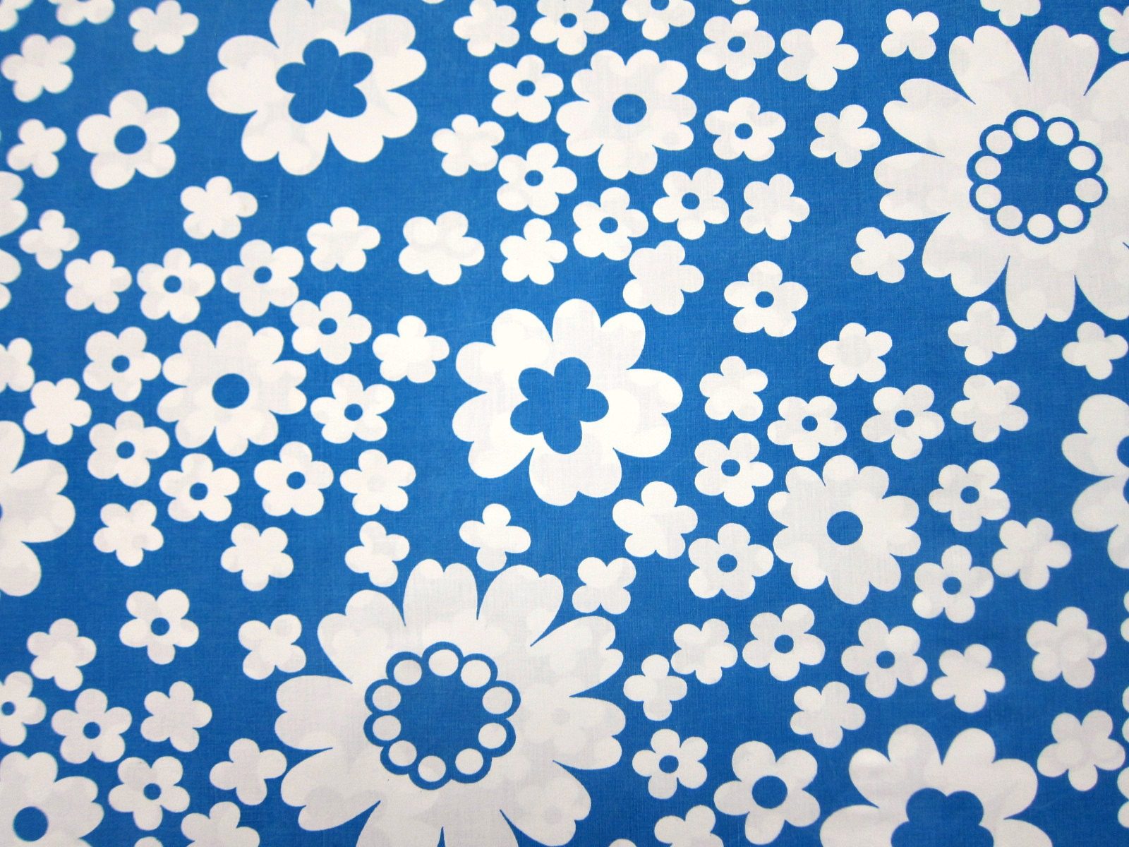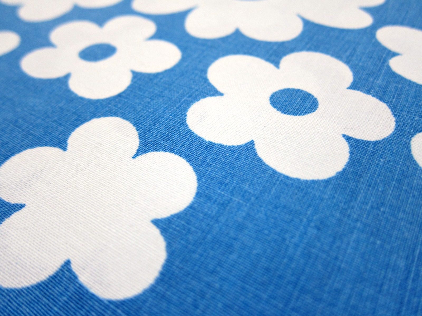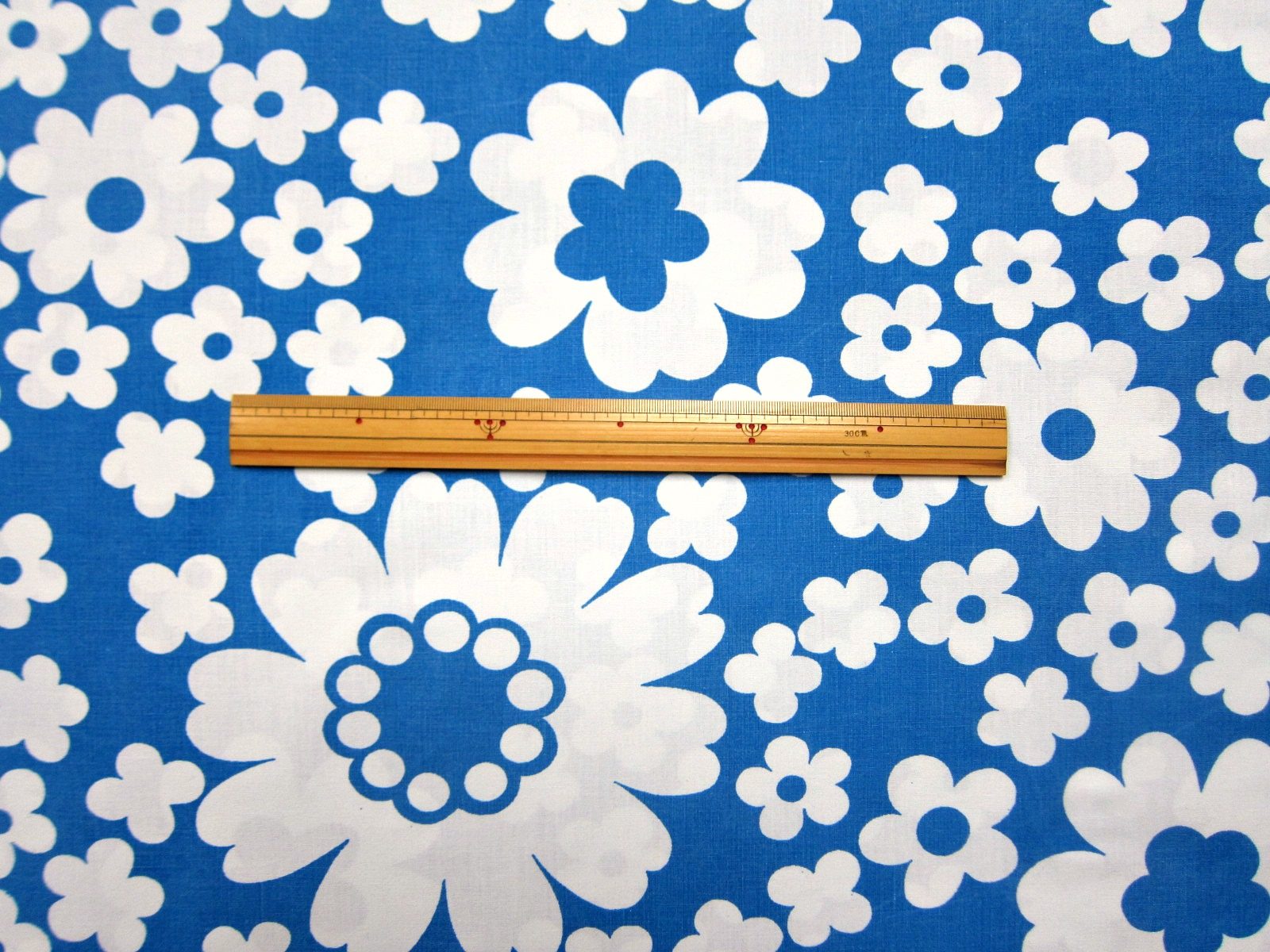 ブルーの花柄レトロヴィンテージ生地 幅128cm