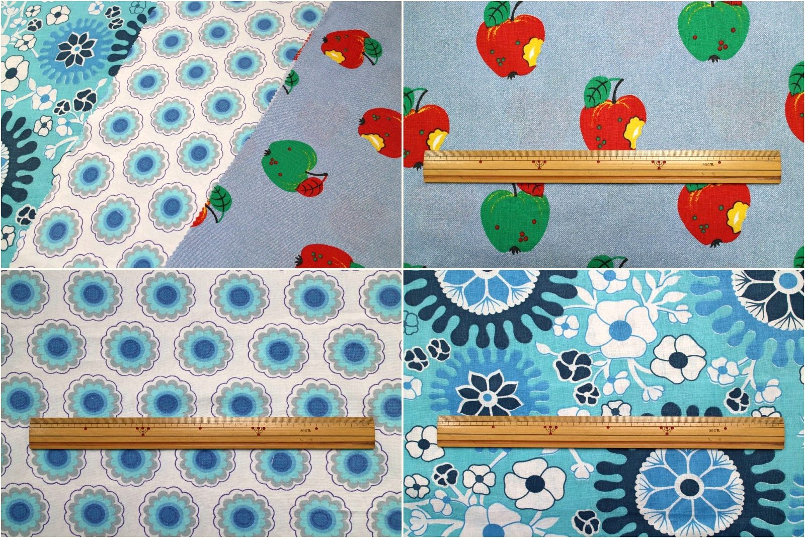 3. 齧ったリンゴがかわいい青い生地 幅120cm x 30cm