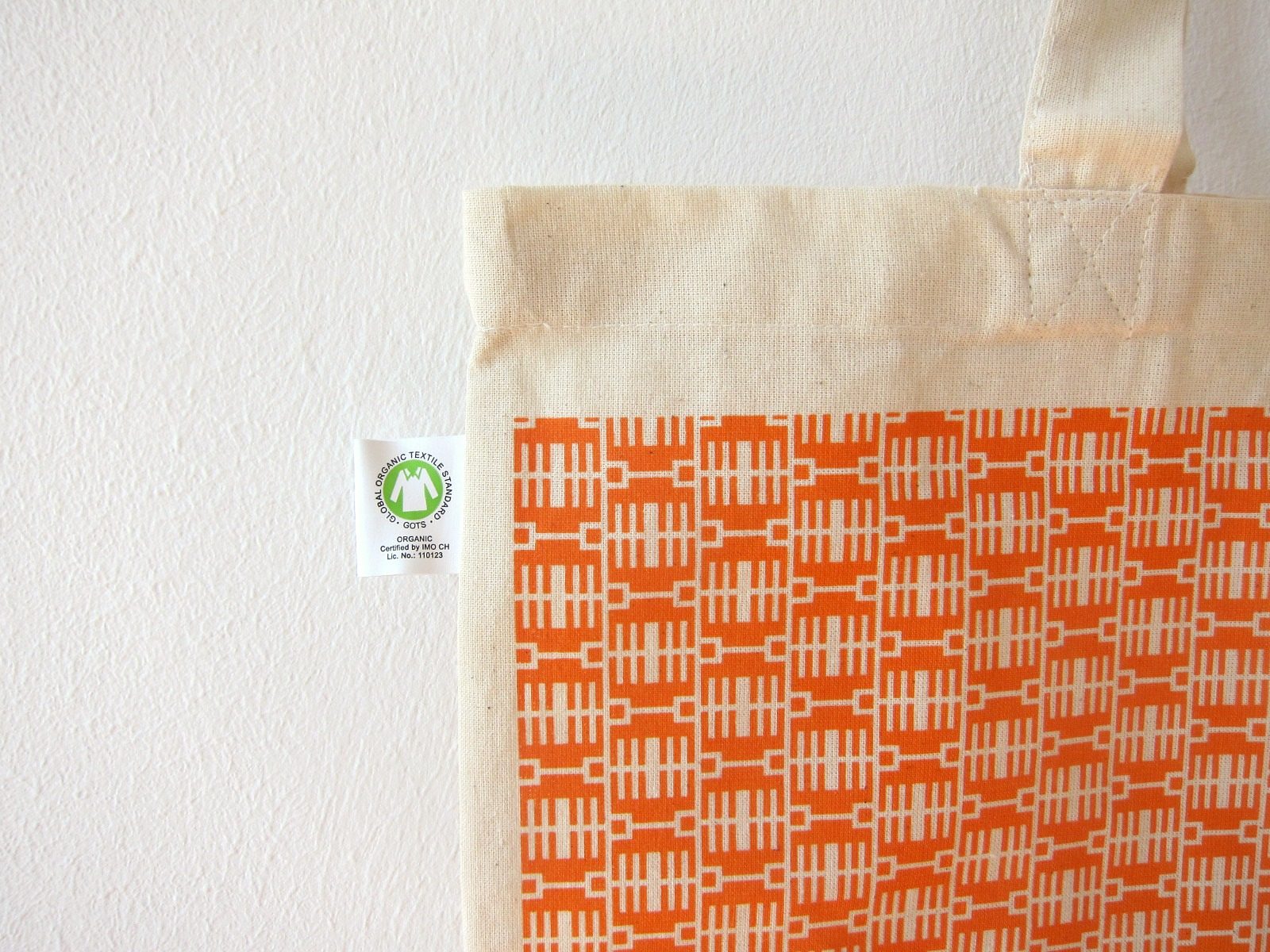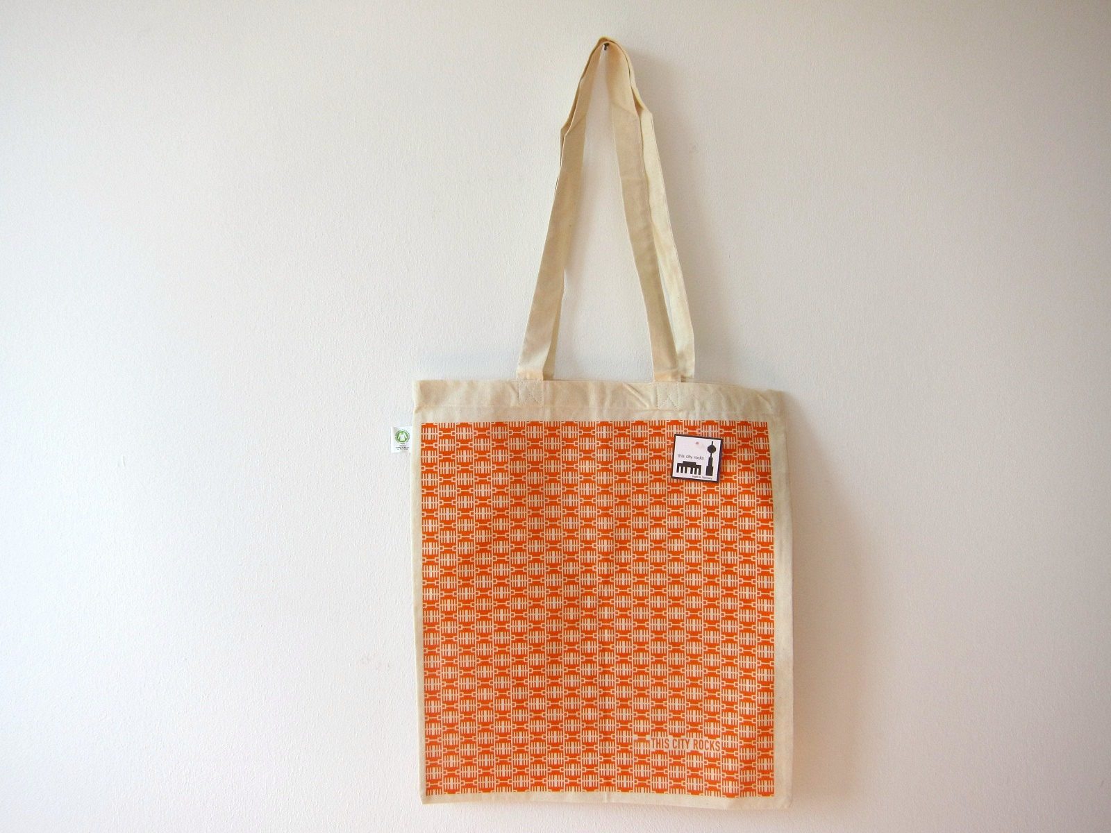 ベルリンらしいクールなエコバッグ 幾何学模様オレンジ オーガニック
