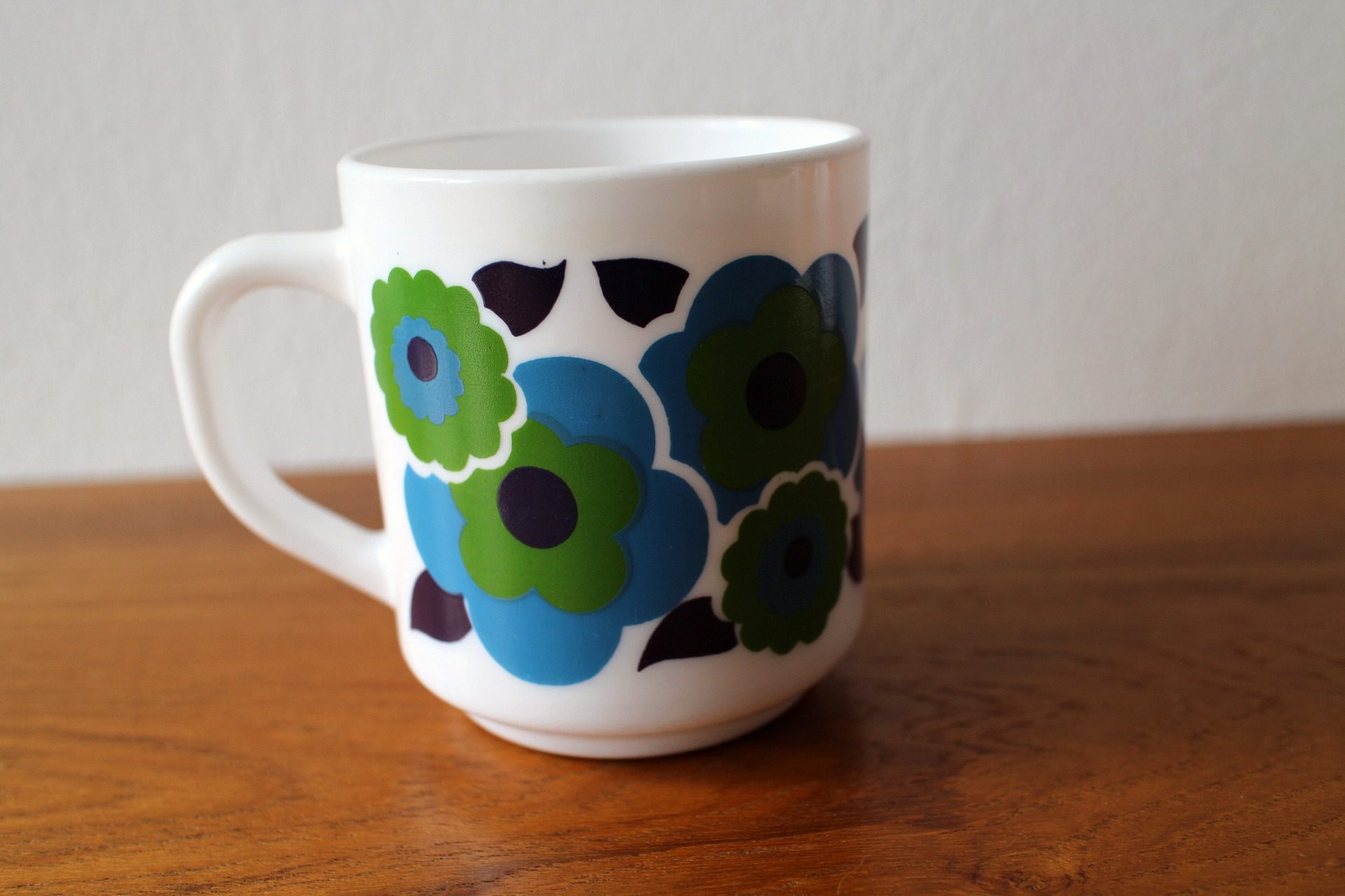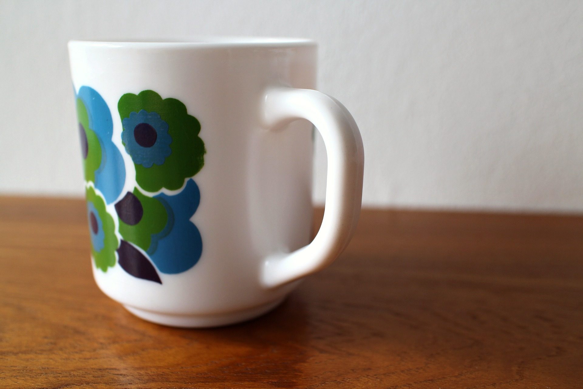 コンテンツにスキップ耐熱性の高いミルクグラスでできたArcopalのマグカップ。