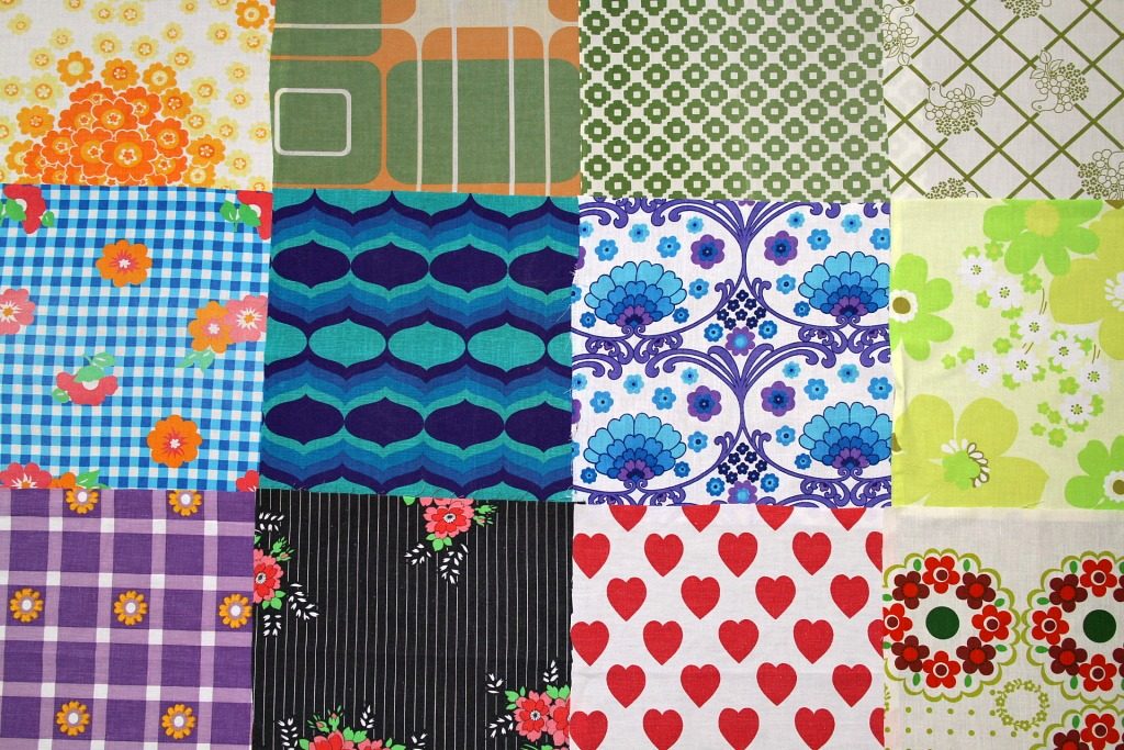 コンテンツにスキップポップな花モチーフにシックな幾何学柄ほかヴィンテージはぎれ12枚セット