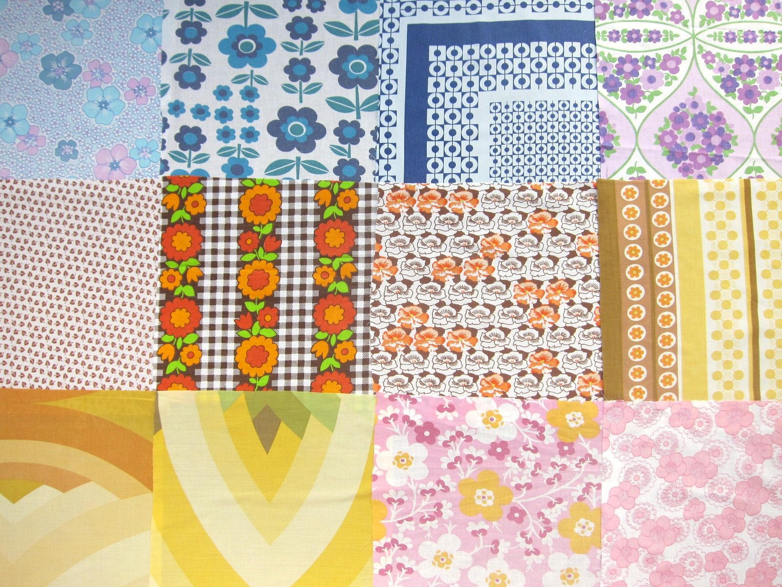 コンテンツにスキップポップな花柄・シックな幾何学などバラエティいろいろレトロはぎれ12枚セット