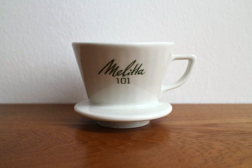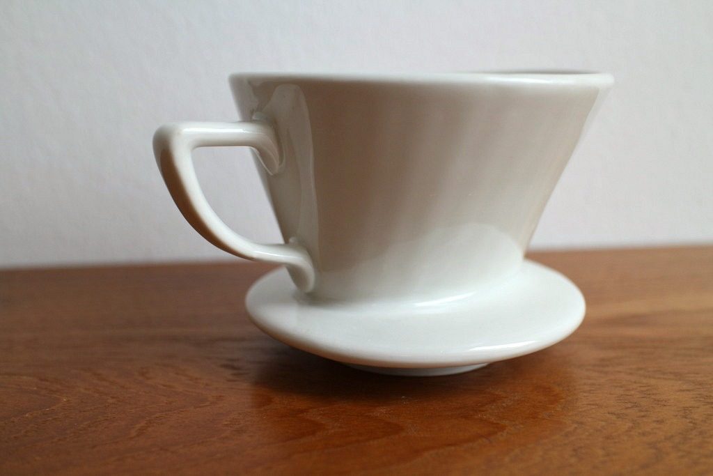 コンテンツにスキップドイツの老舗コーヒーフィルターメーカー、メリタ社の白い陶器のヴィンテージドリッパー。