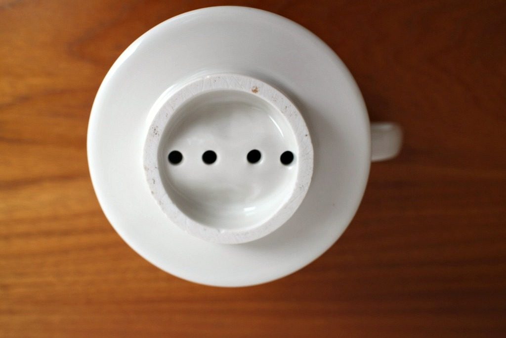 1960年代以降現在に至るまで1つ穴式に統一されているMerlittaのコーヒーフィルターですが、こちらはそれ以前の試行錯誤の時代に製造されたレアな4つ穴式。