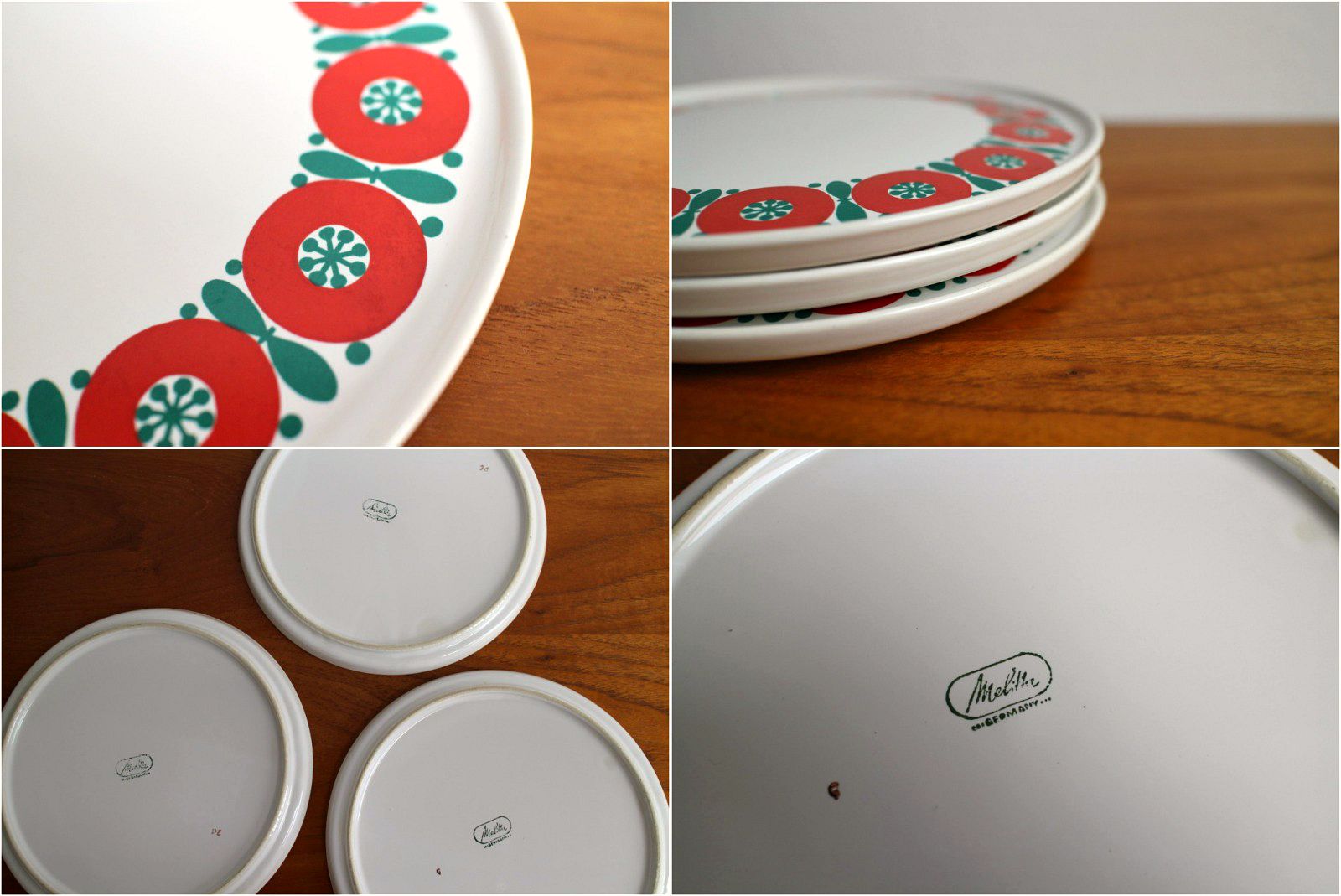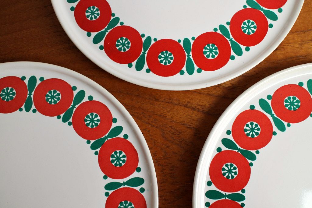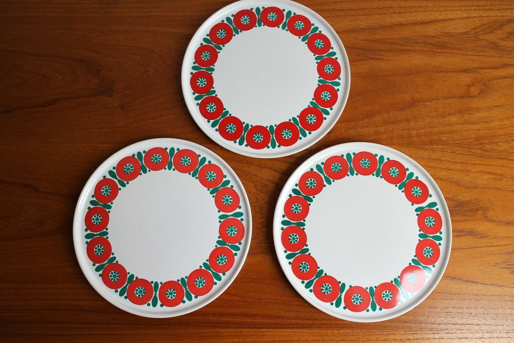 メリタVINTAGE 赤&緑のレトロ模様いりケーキ皿3枚セット(径19cm)