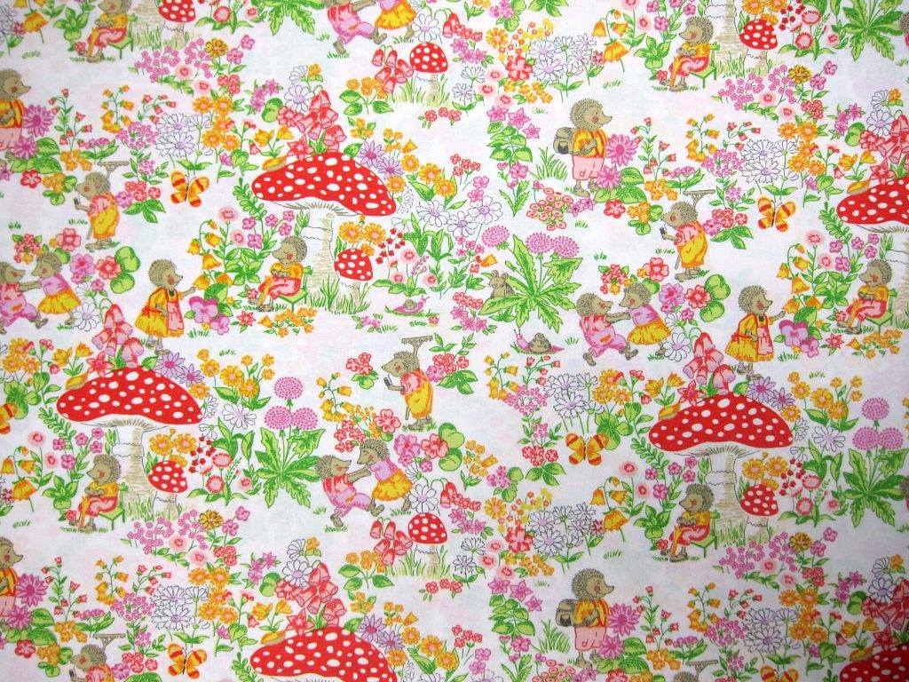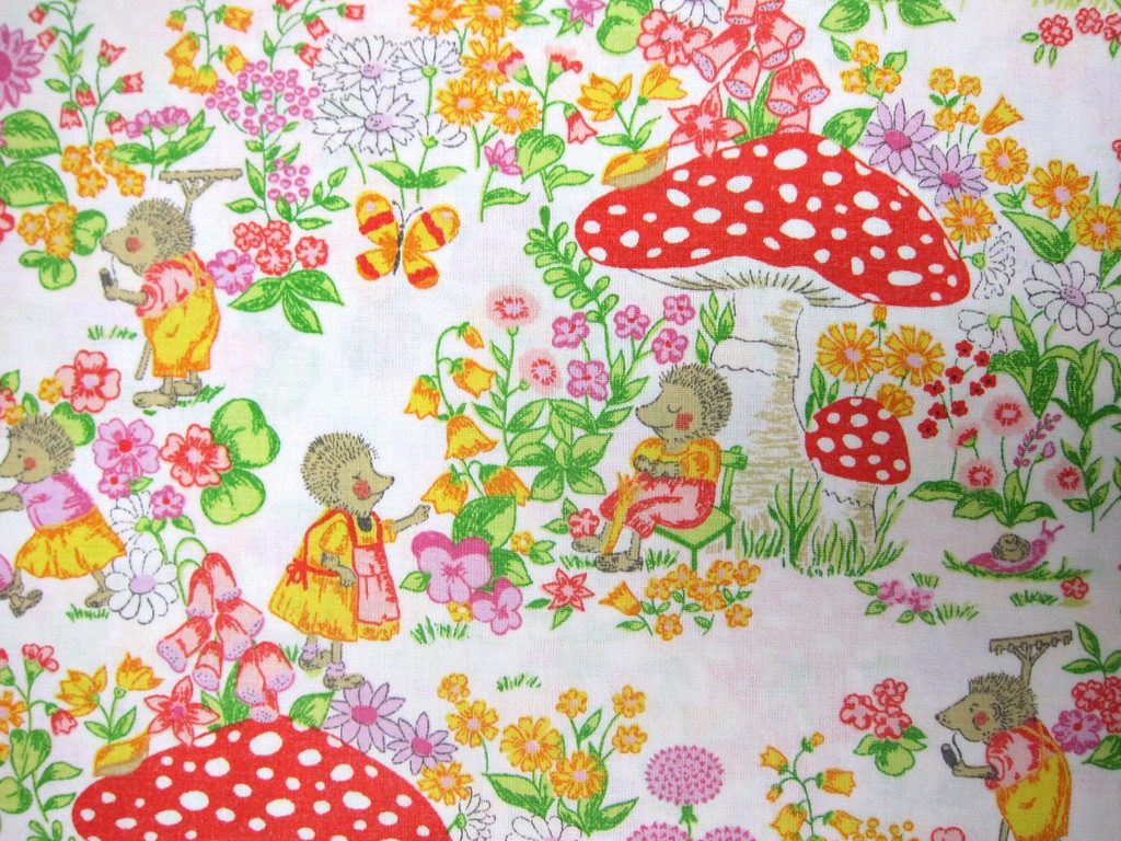 赤いキノコとハリネズミのイラストが入った可愛らしいパターンです。