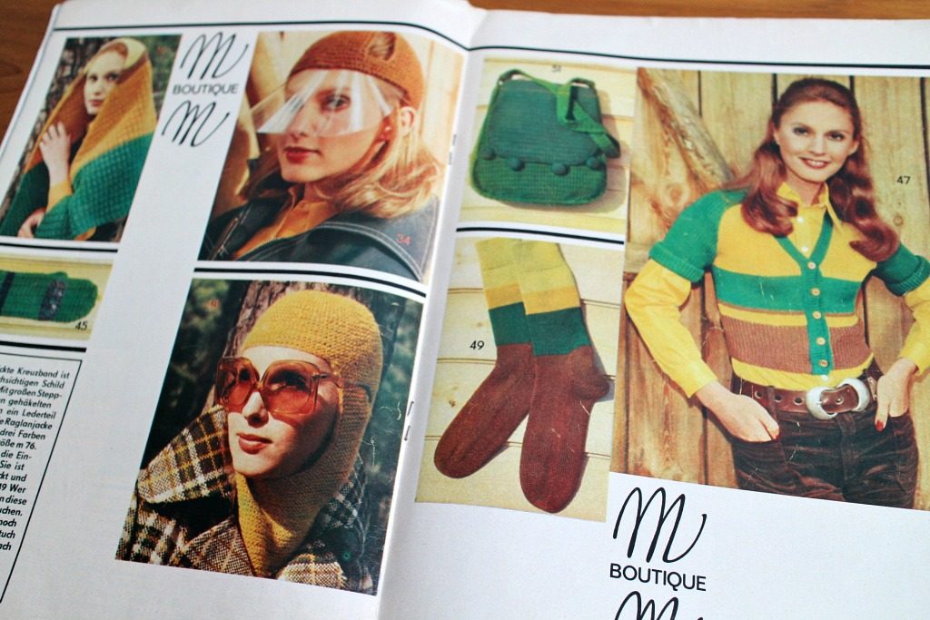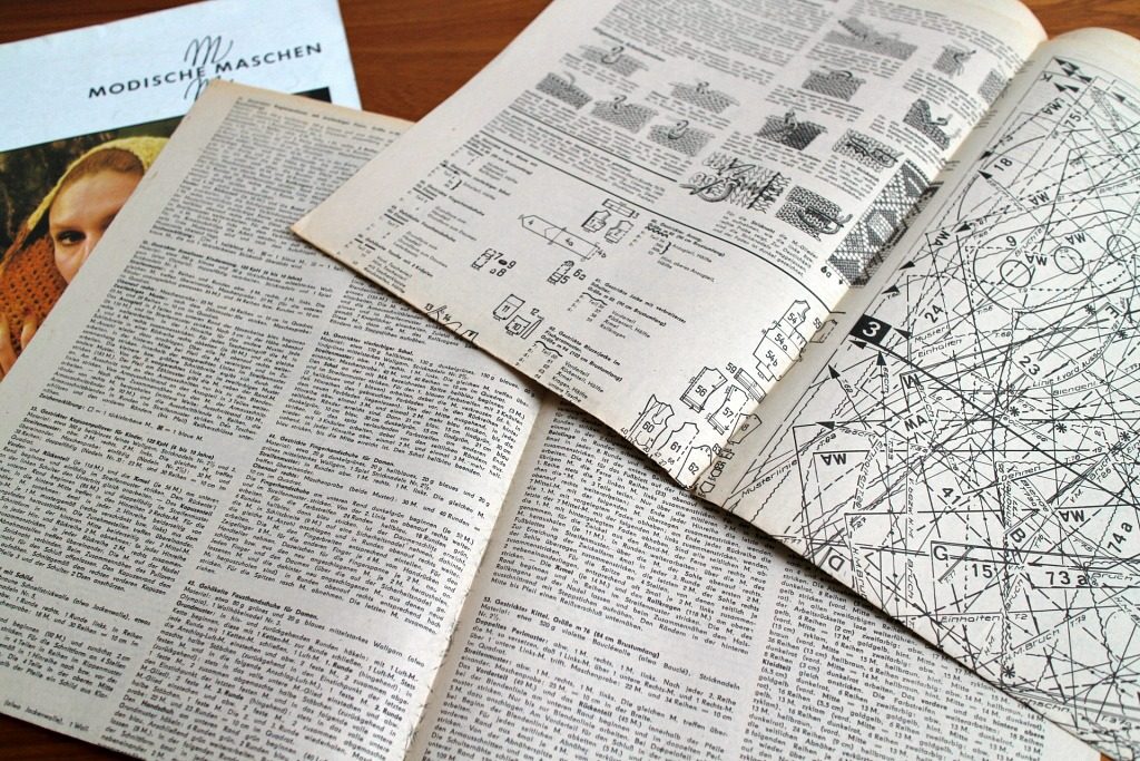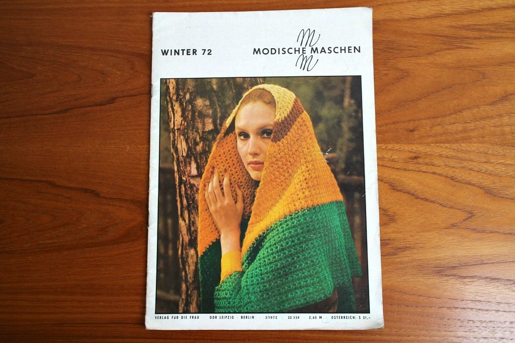 70年代の旧東ドイツで刊行された編み物雑誌。 女性・子ども用のニットファッションが写真入りで紹介されています。 新聞紙大の図案が2枚入った実用誌 (説明はドイツ語)。