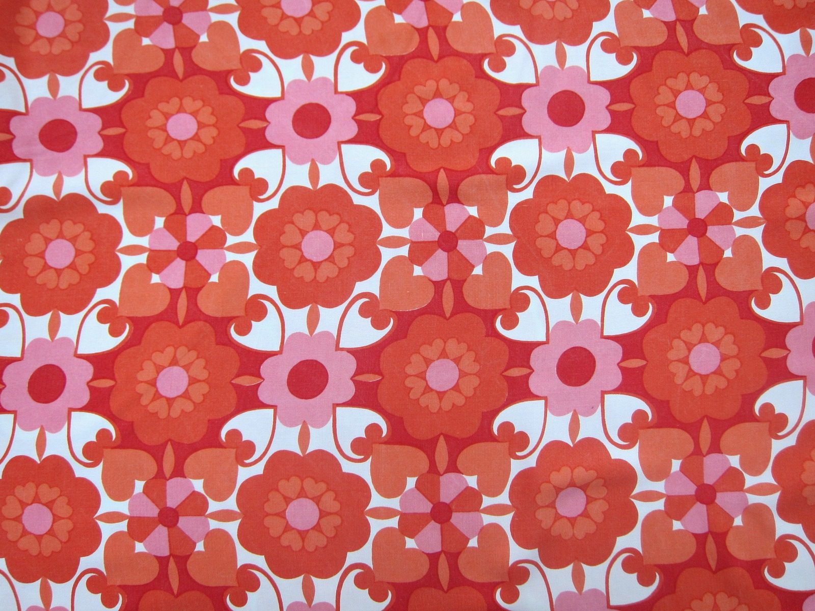 レッドとピンクのフラワーが印象的 70年代レトロクールなファブリック幅100cm