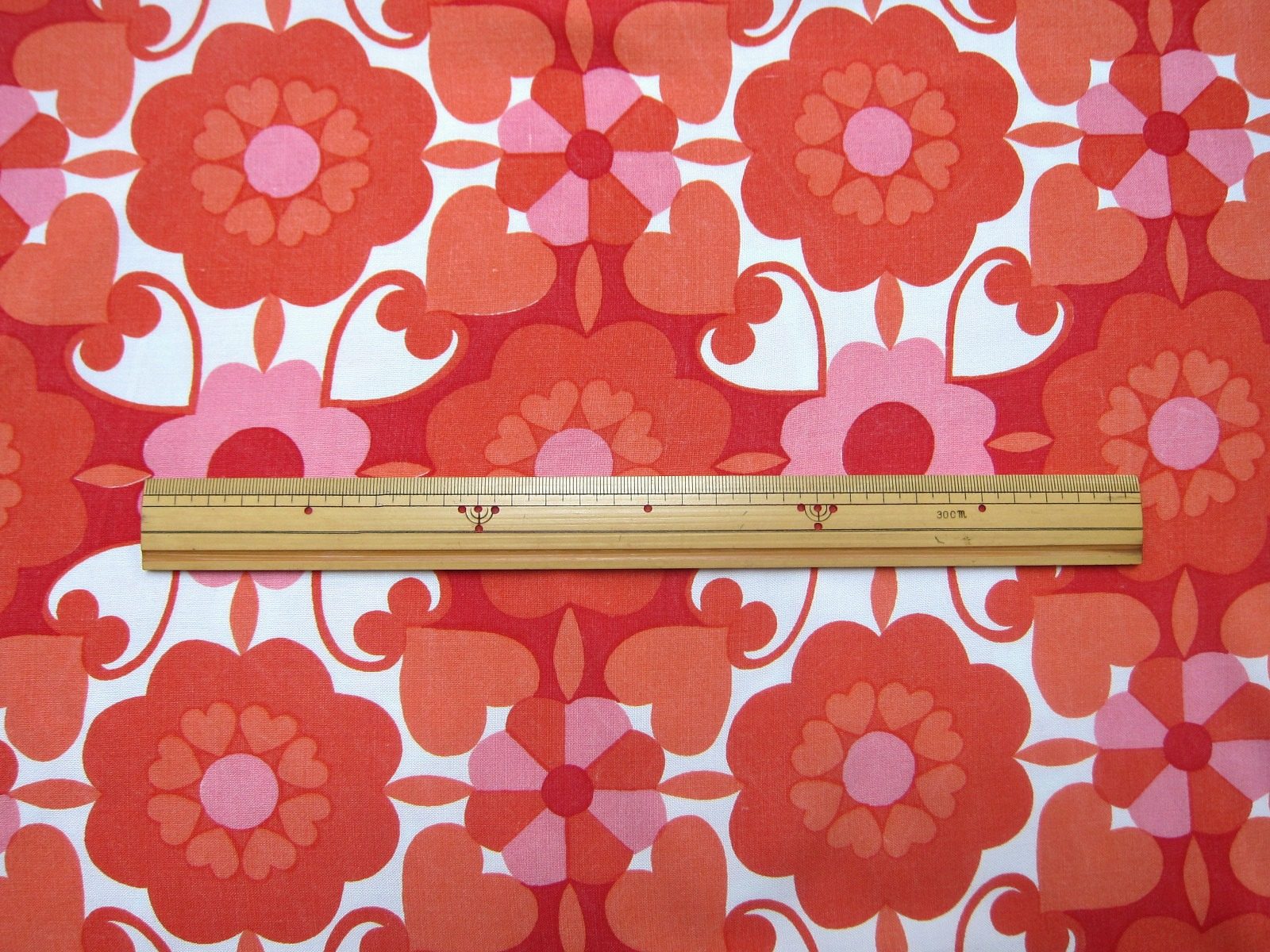 白地にレッドとピンクがキレイに発色したファブリックです。