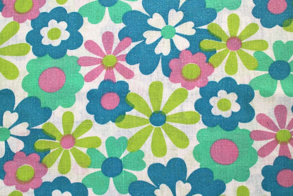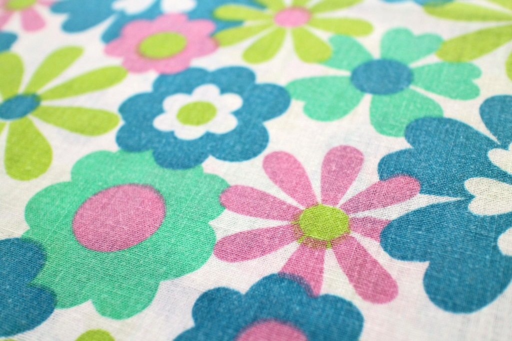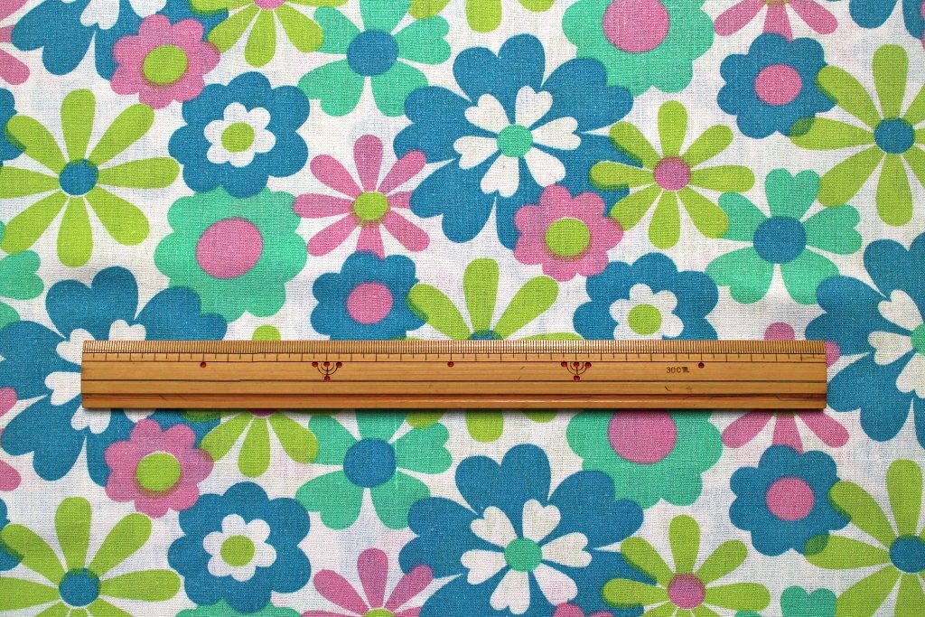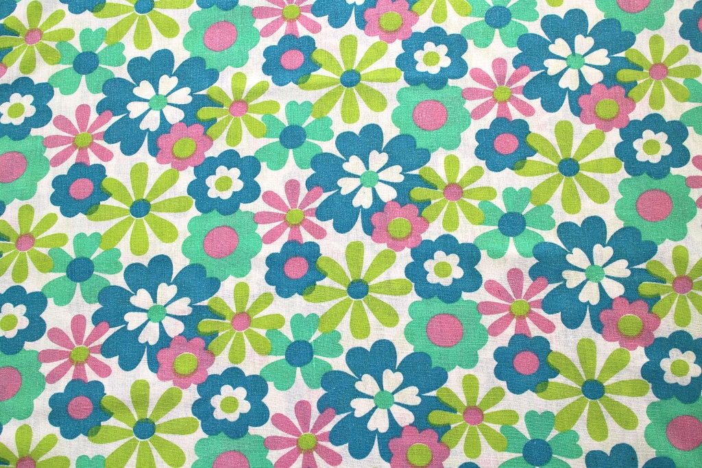 コンテンツにスキップ水色やピンクなどパステル調のフラワーモチーフがふわっと広がるレトロ感いっぱいのかわいいビンテージファブリック。