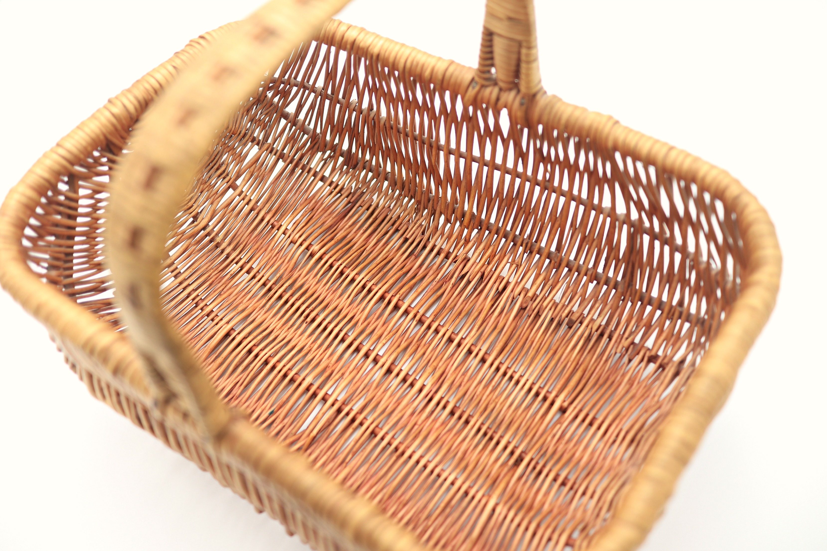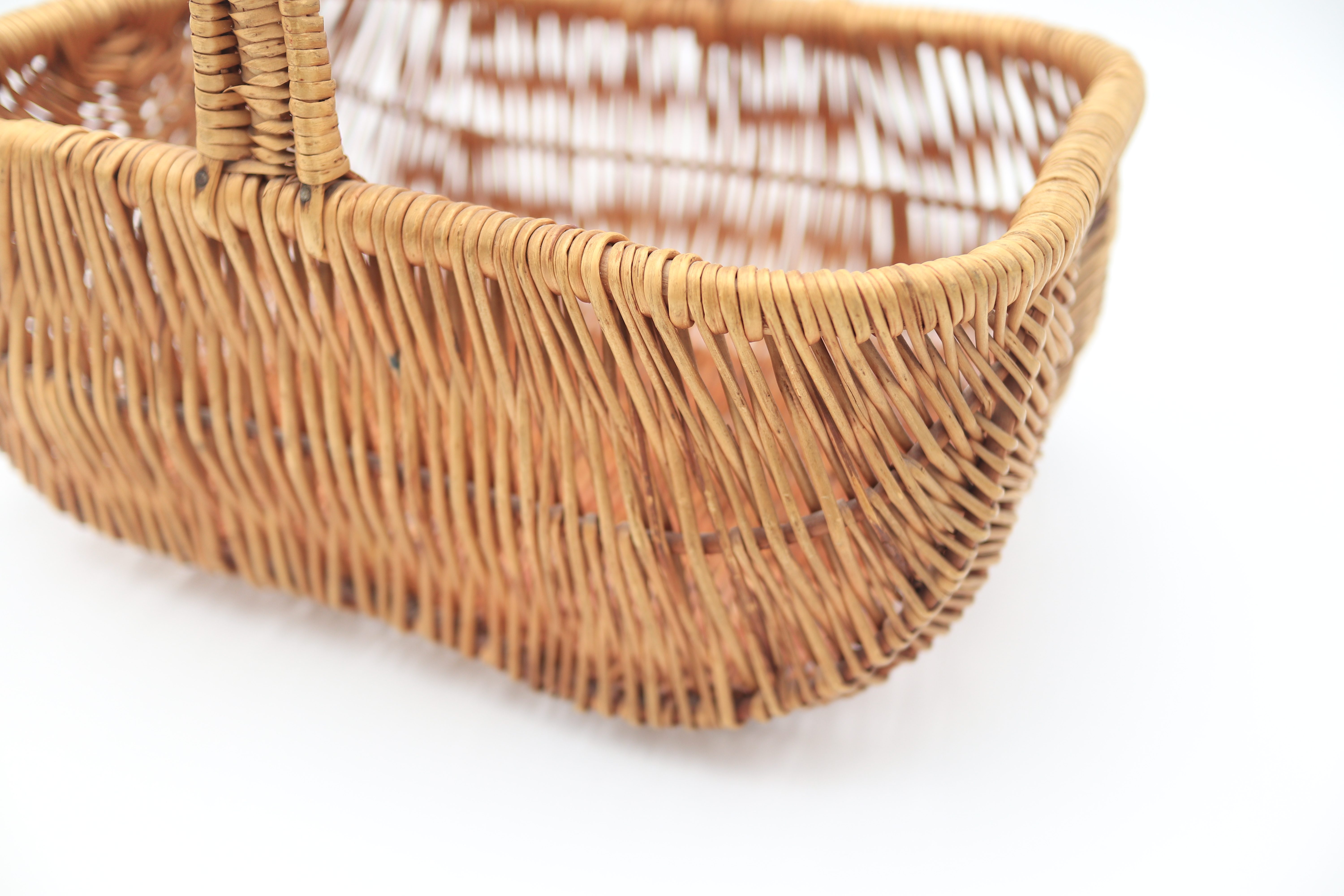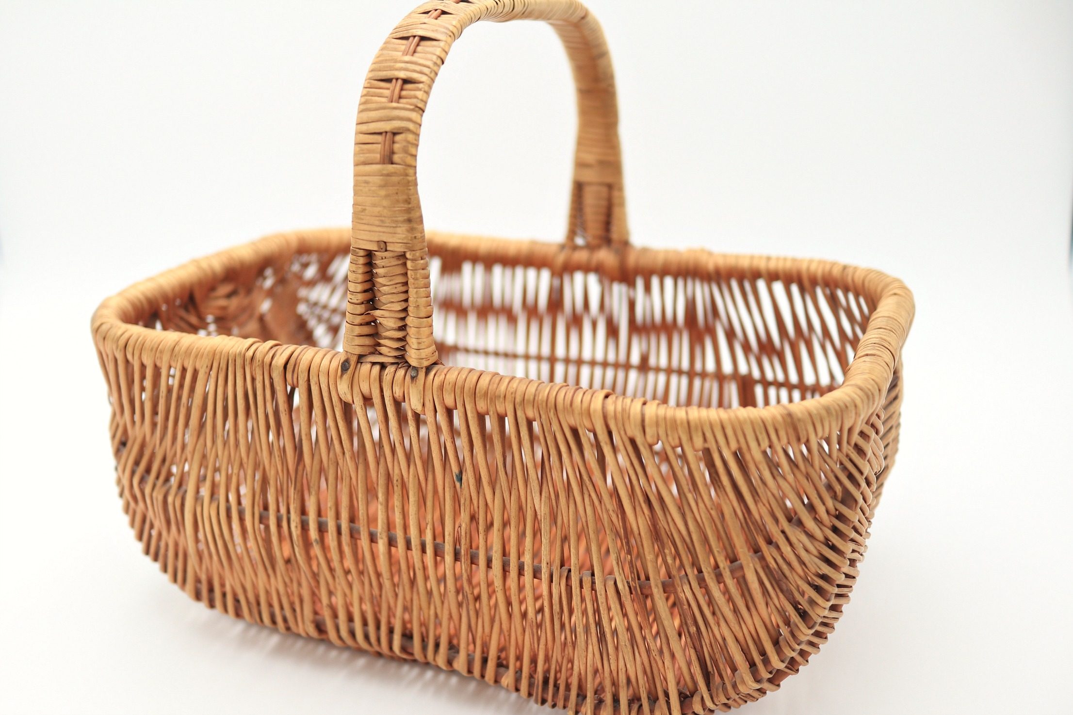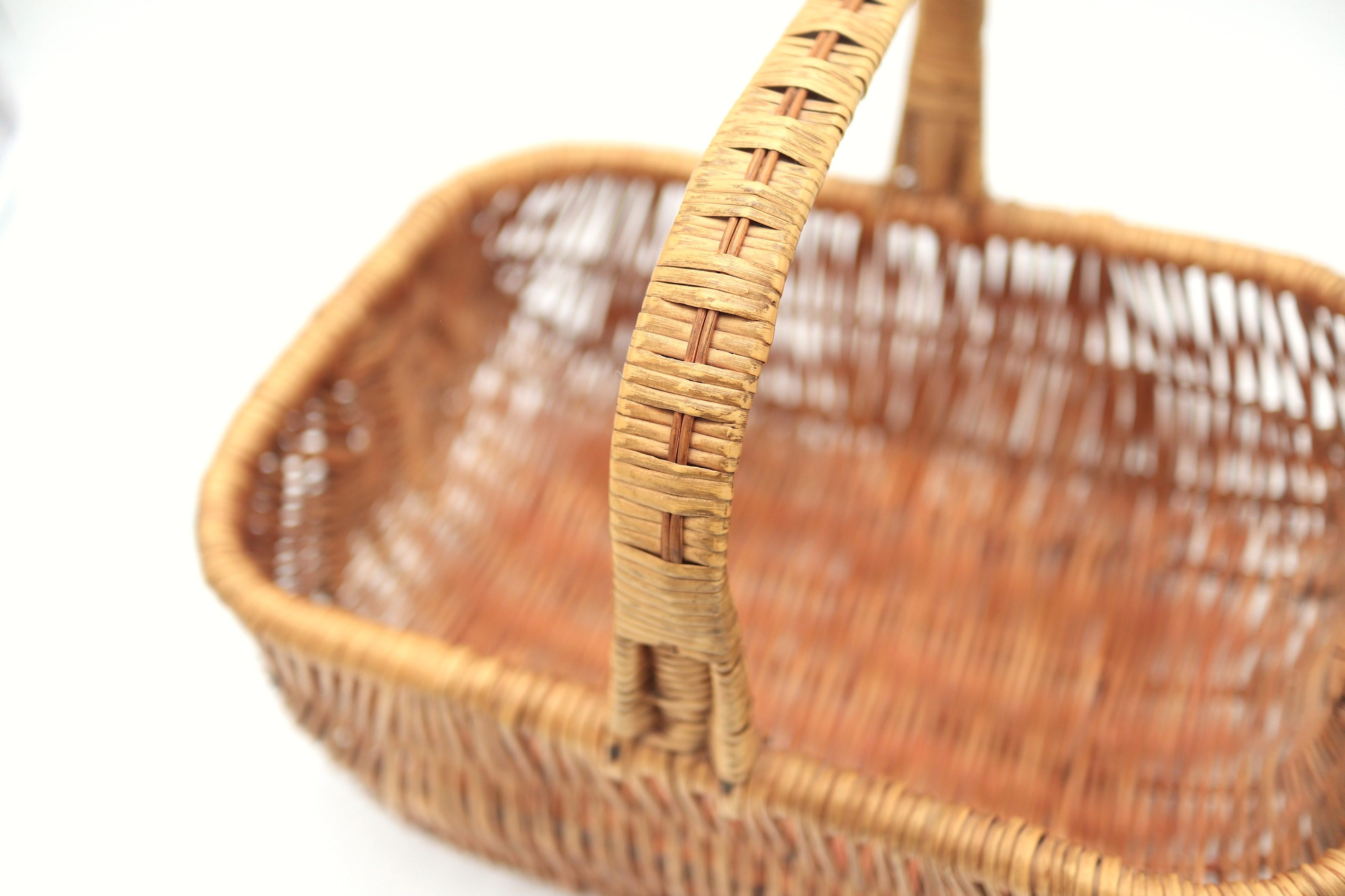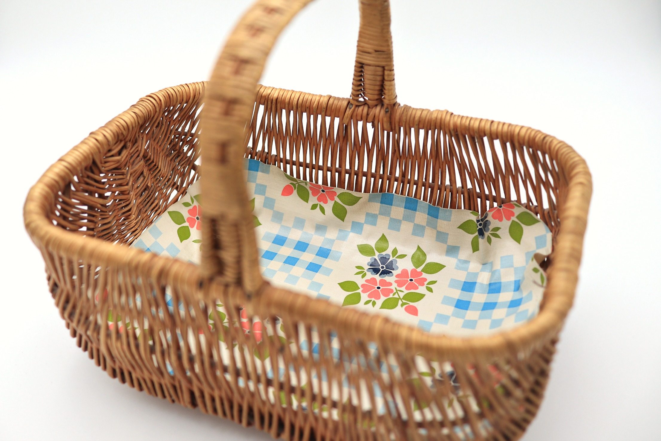 ライプツィヒの蚤の市で見つけた、花模様のビニールシート付きビンテージ籐カゴ。 シートは気分に合わせて取り外しが可能です。 果物やパンを入れて食卓用に、またはサンドイッチを入れてお庭でピクニックなんかも楽しそう。 毛糸玉を入れて編み物カゴとしても使える、用途多彩な便利サイズです。
