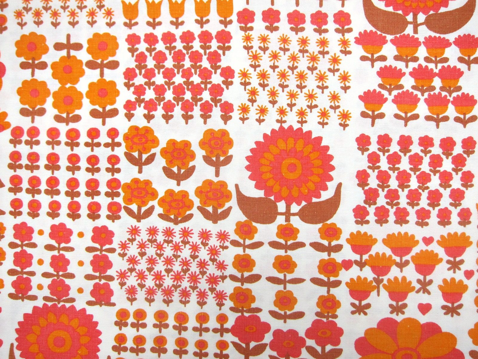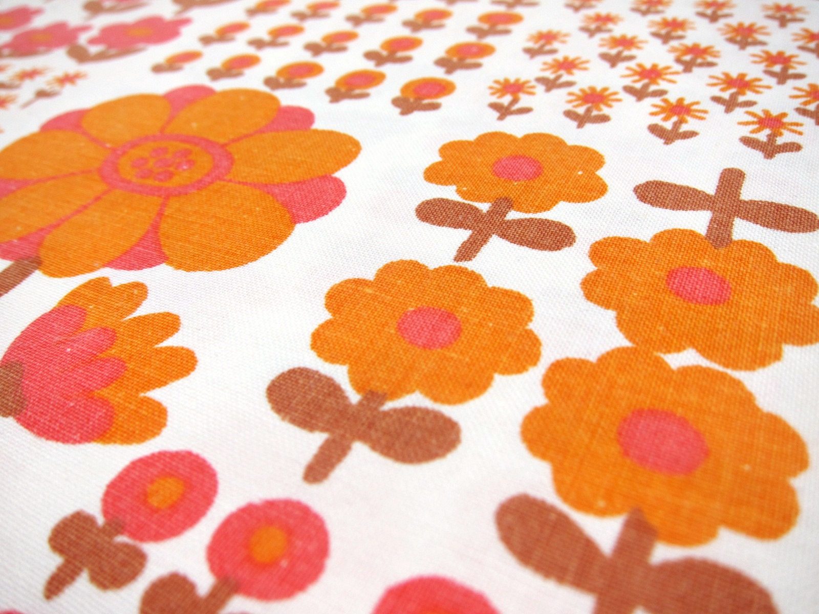 レトロなピンクとオレンジの花柄がかわいいファブリックです。