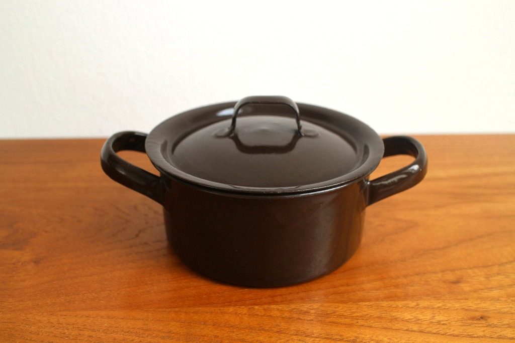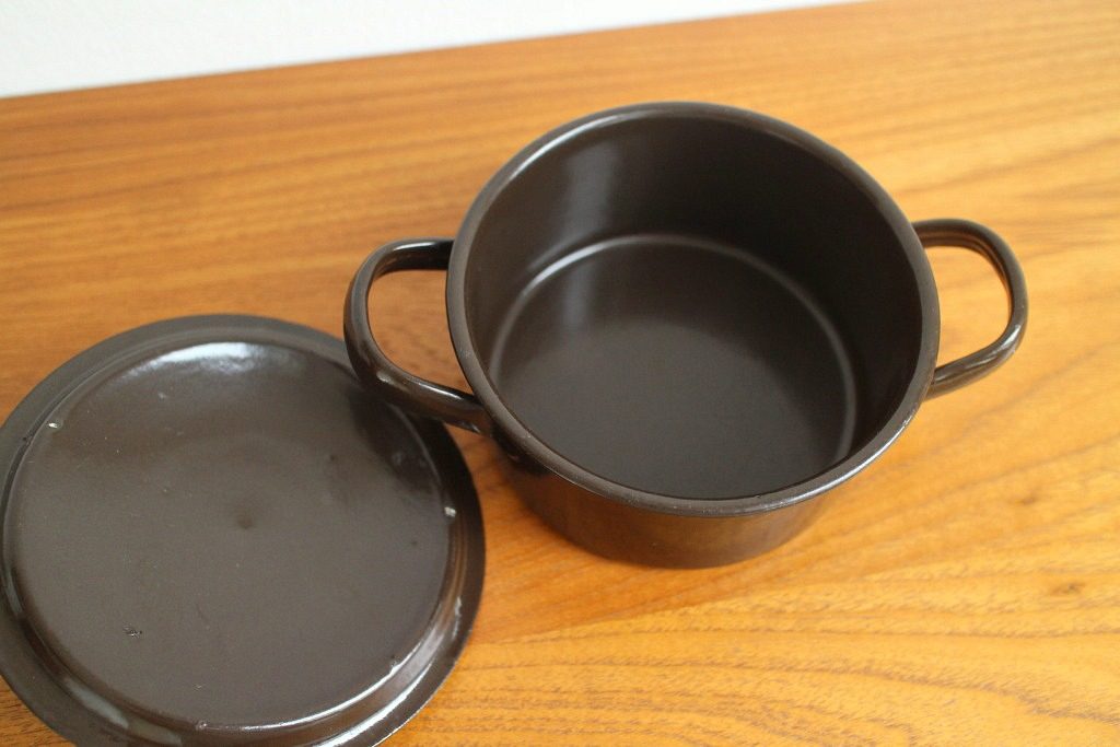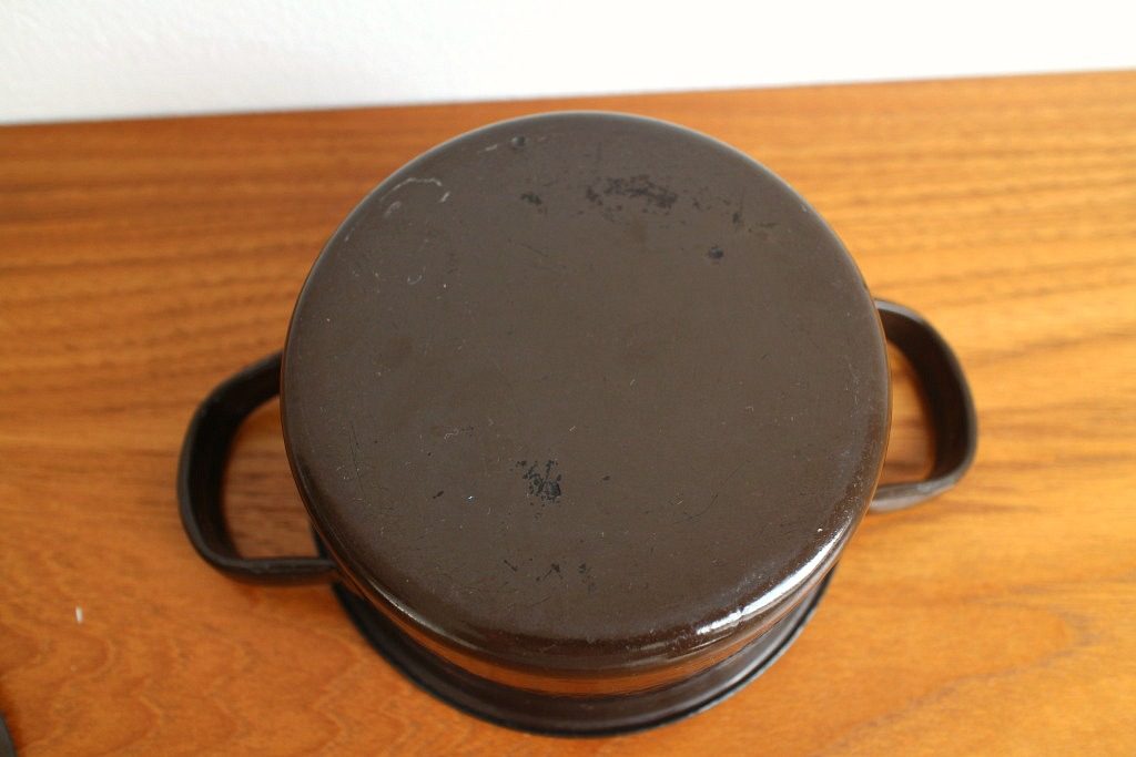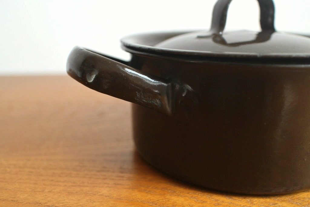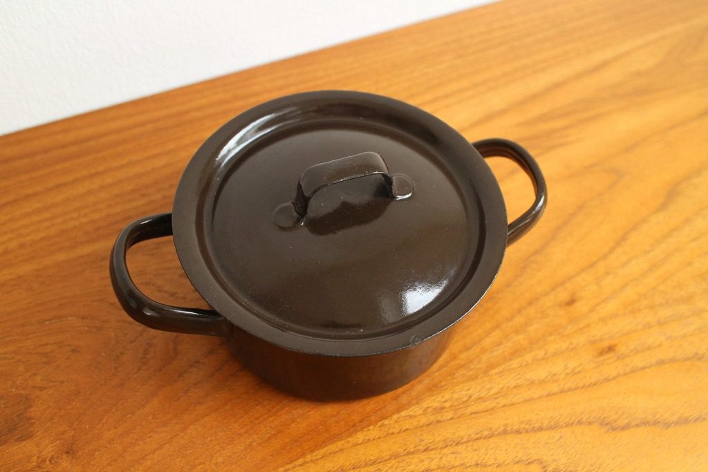 レトロなホーロー製小さな両手鍋(ダークブラウン)