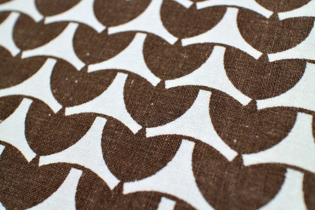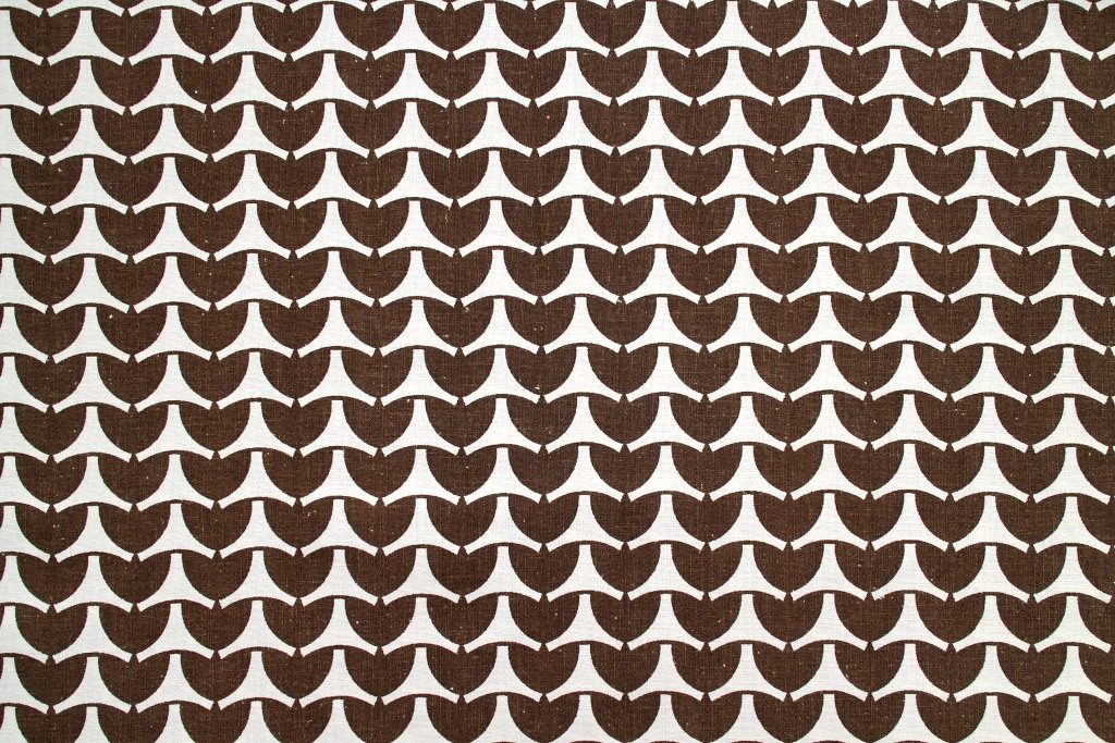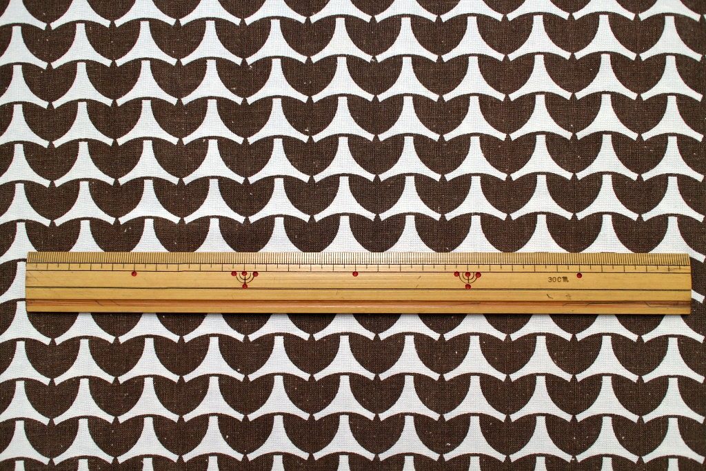 翼を広げた鳥のようにもテトラポッドのようにも見える、オモシロ幾何学模様のレトロファブリック。