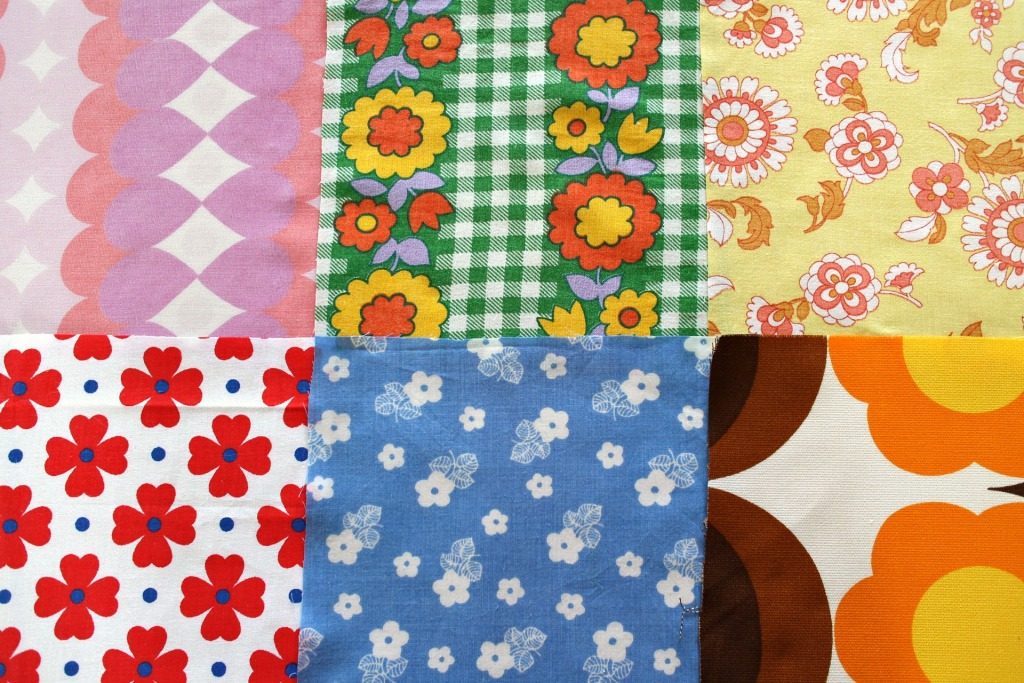 ドイツ70年代の花柄と幾何学模様のヴィンテージファブリックセット。