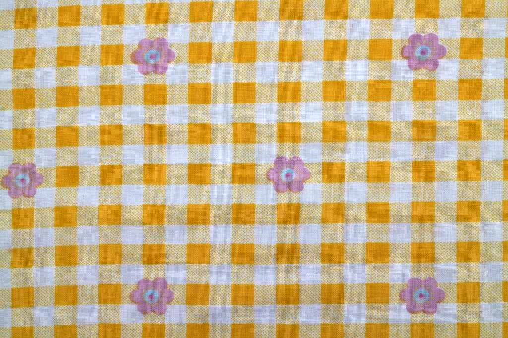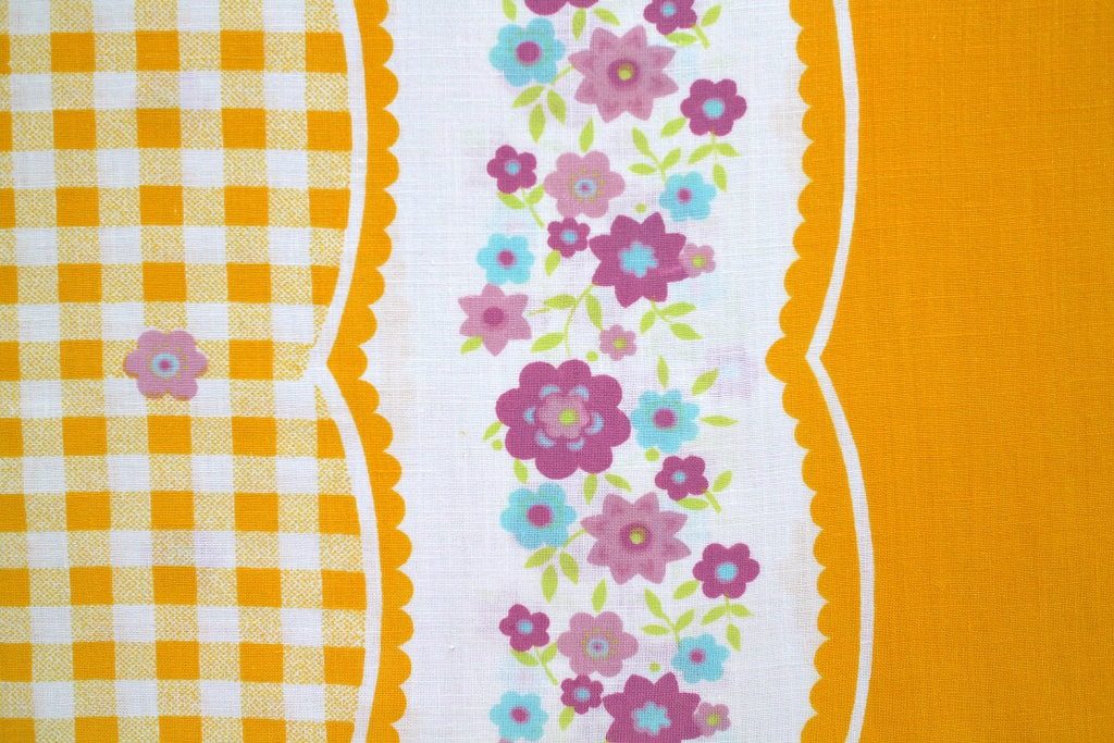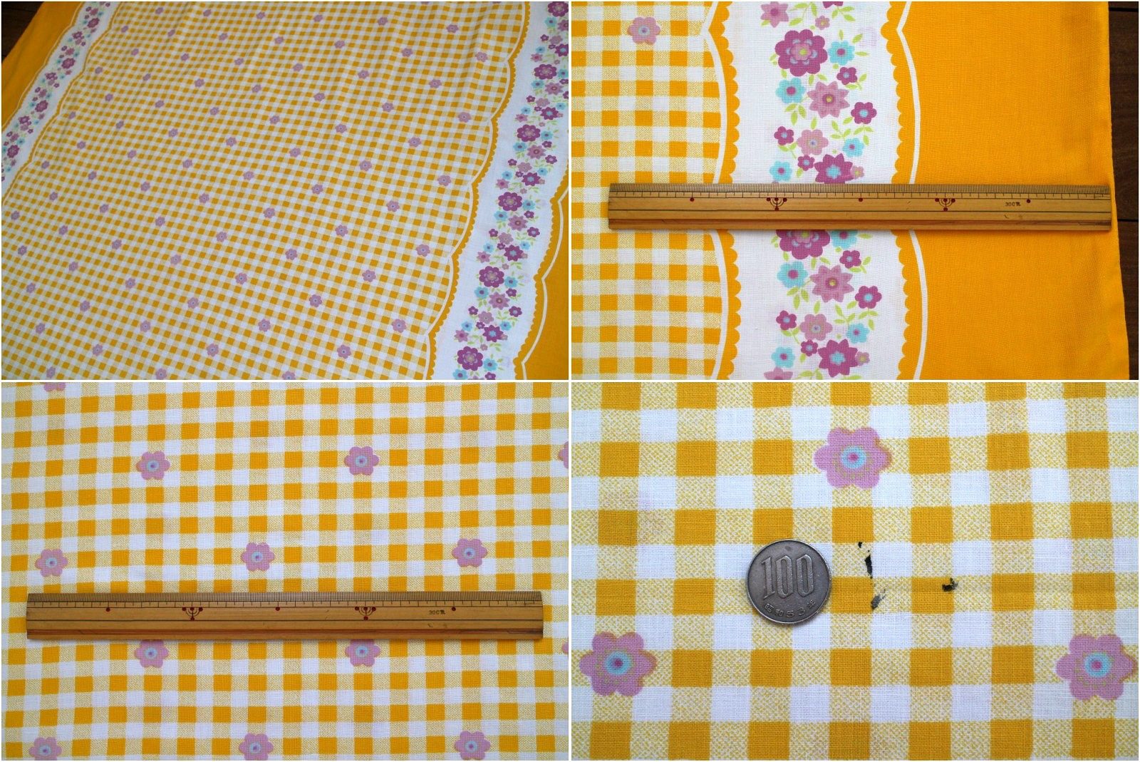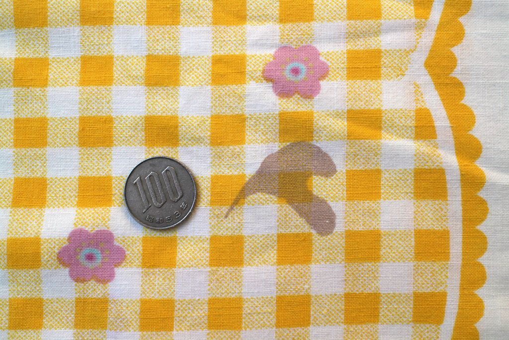 ギンガムチェックにキュートな花モチーフが散らばったふんわり優しいレトロ柄ヴィンテージファブリック。