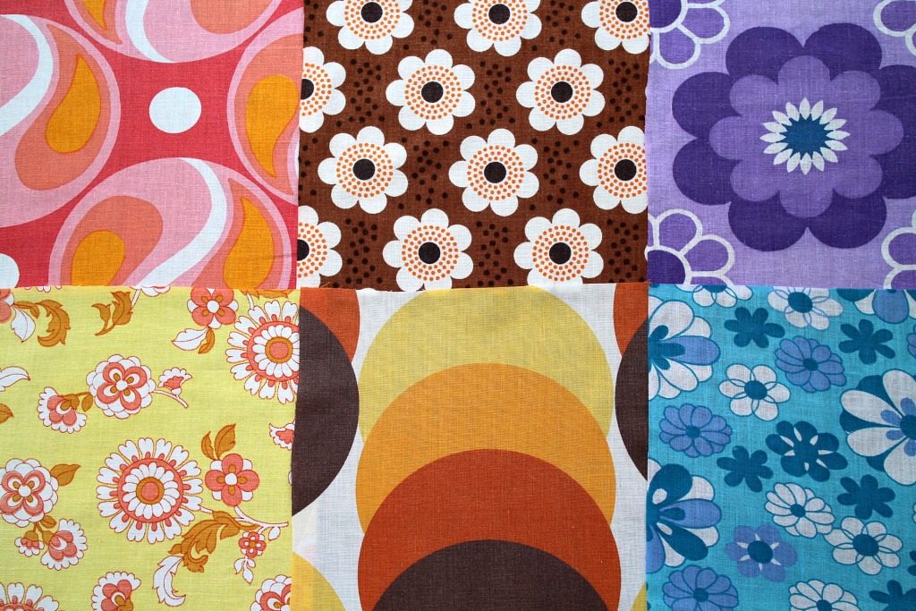 コンテンツにスキップレトロポップな花模様にサイケ柄幾何学柄も!ヴィンテージカットクロス6枚セット