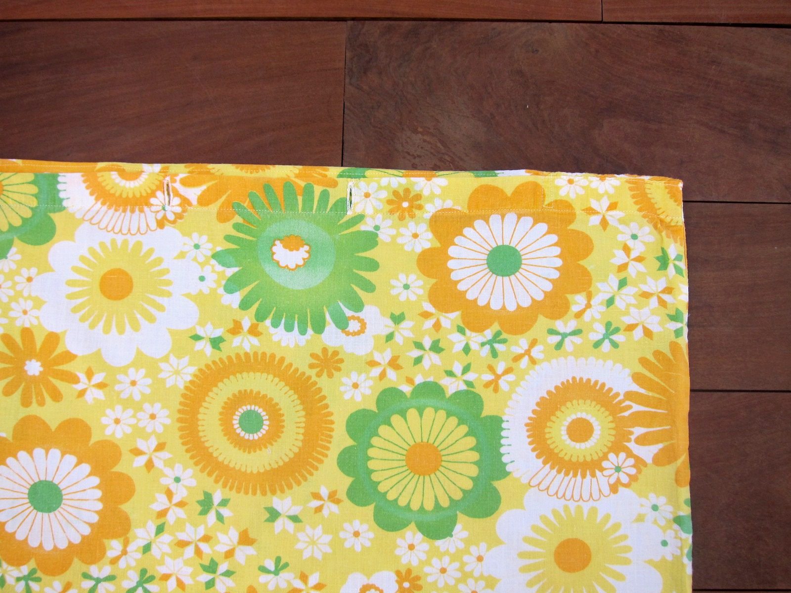 明るい印象の黄色系ヴィンテージピローケース。 グリーン色のお花がアクセントになった、ふんわりとした優しい雰囲気です。