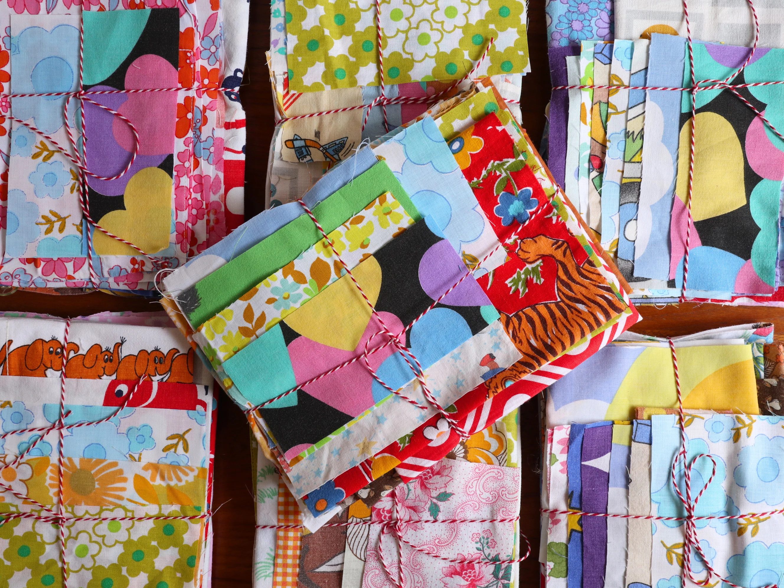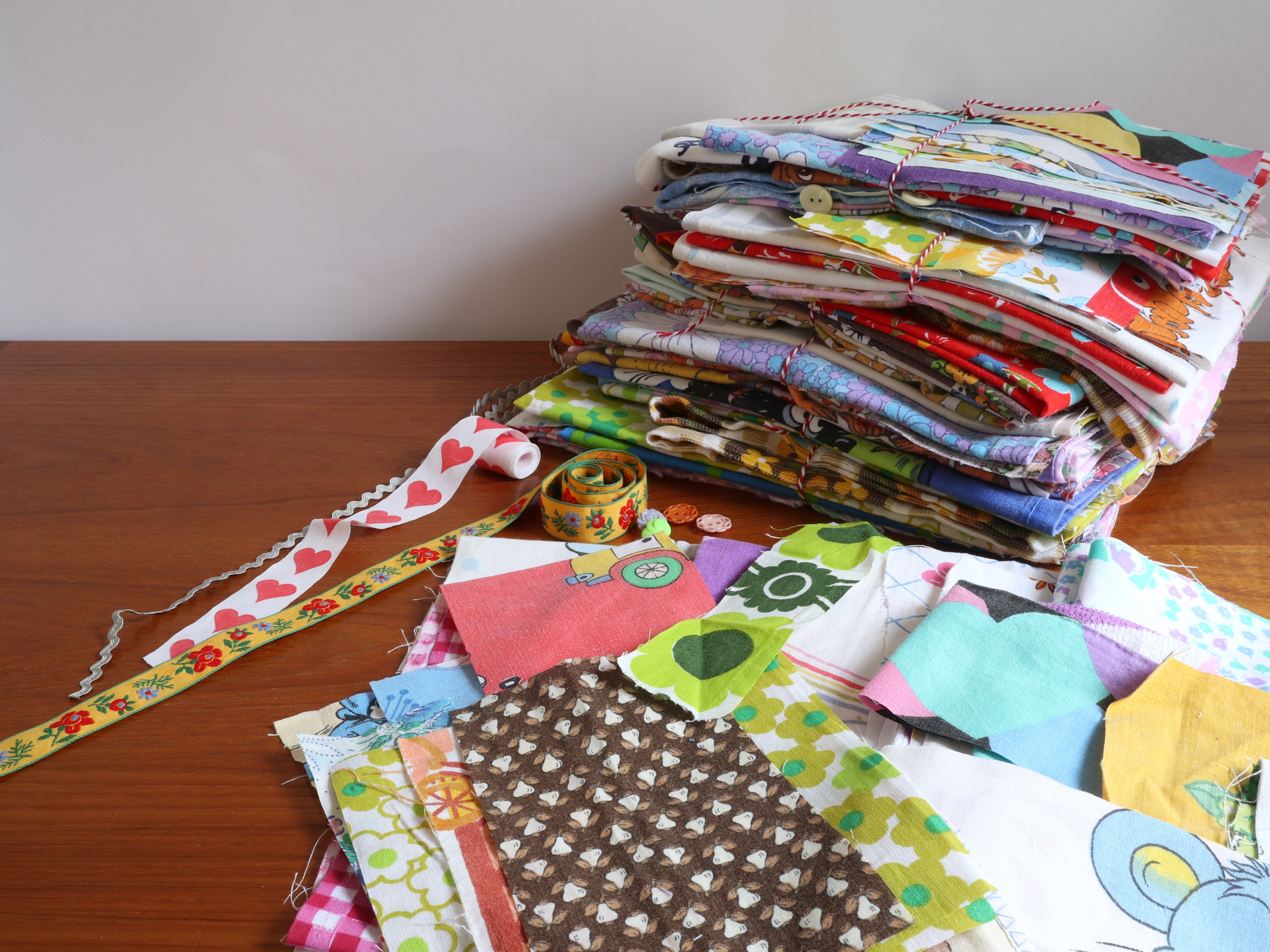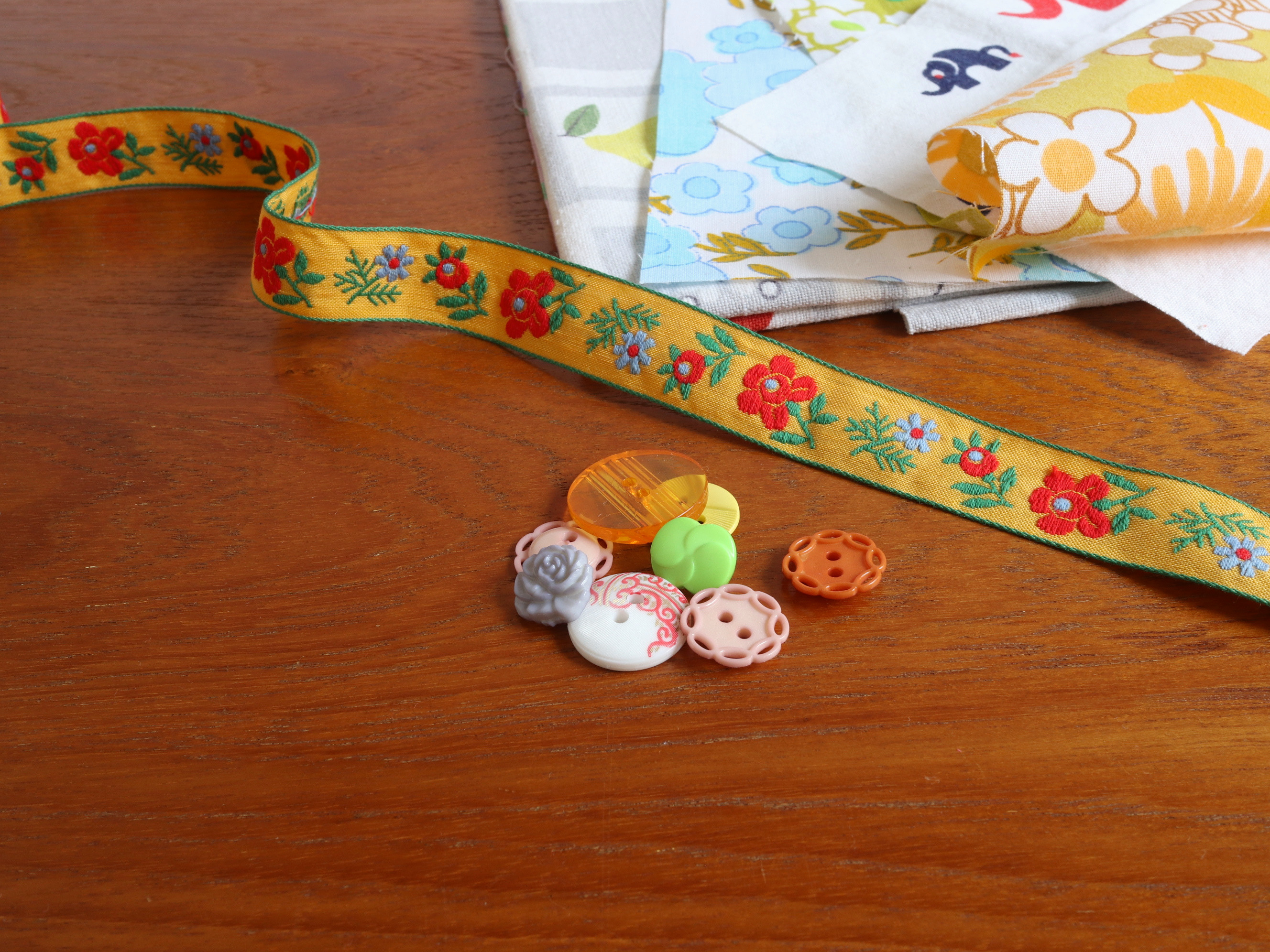 ヴィンテージファブリックはぎれお楽しみセット200g+ボタン+テープ