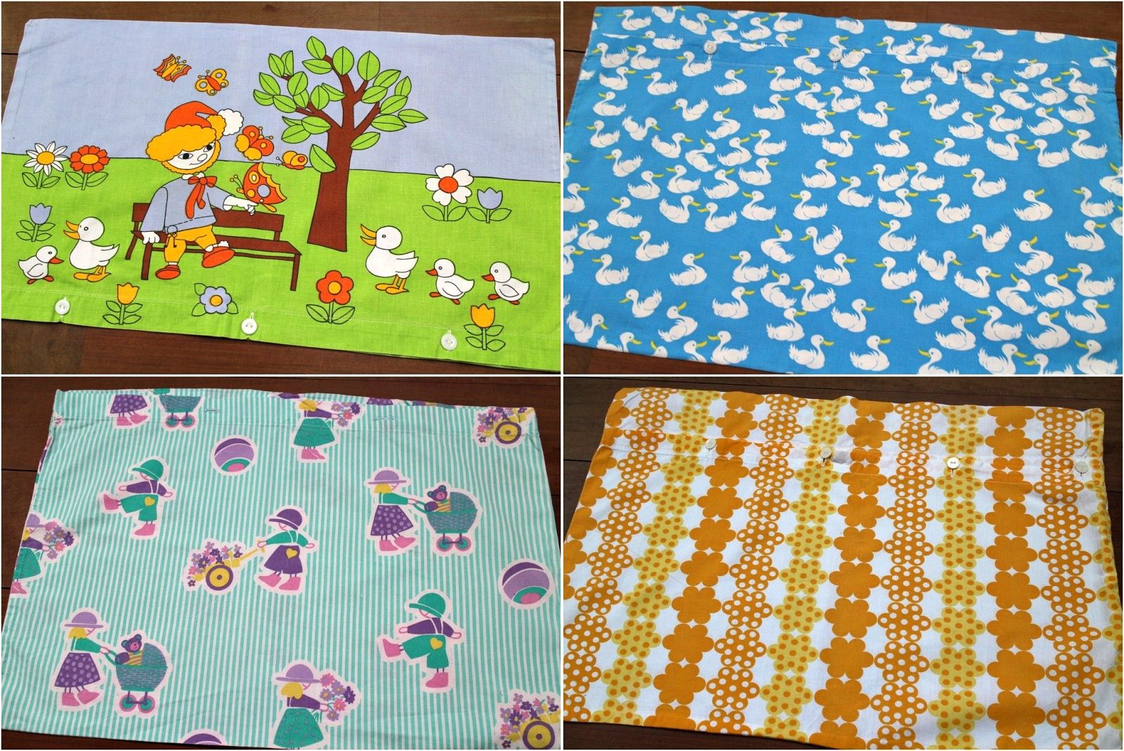人気の子ども柄ヴィンテージピローケースの4枚セット。