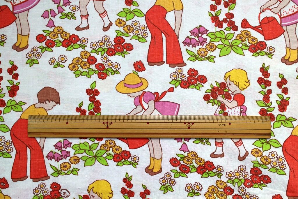 2. 可愛い水やり少女柄(レッド系) サイズ: 38cm x 54cm