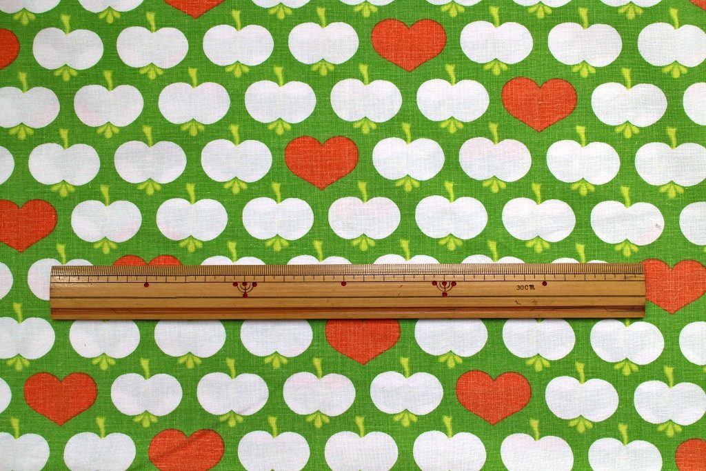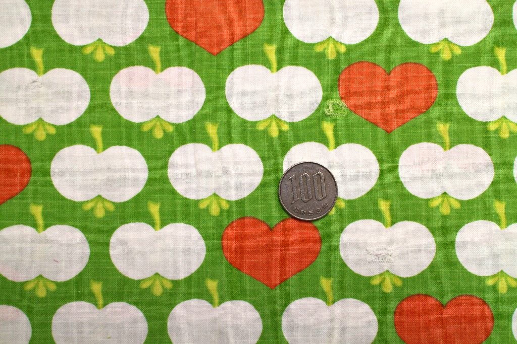 3. 白いりんごとレトロなハート(グリーン) サイズ: 35cm x 58cm