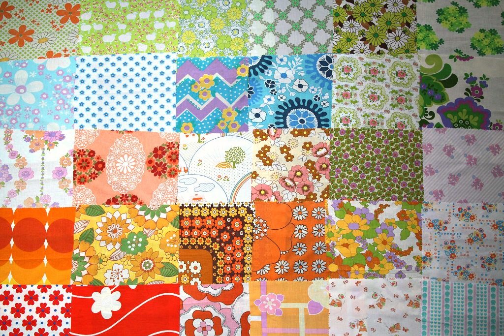 オレンジ・グリーン・ブルーなどカラーいろいろ、レトロフラワー柄がたっぷり入ったお得なビンテージカットクロス30枚セット。