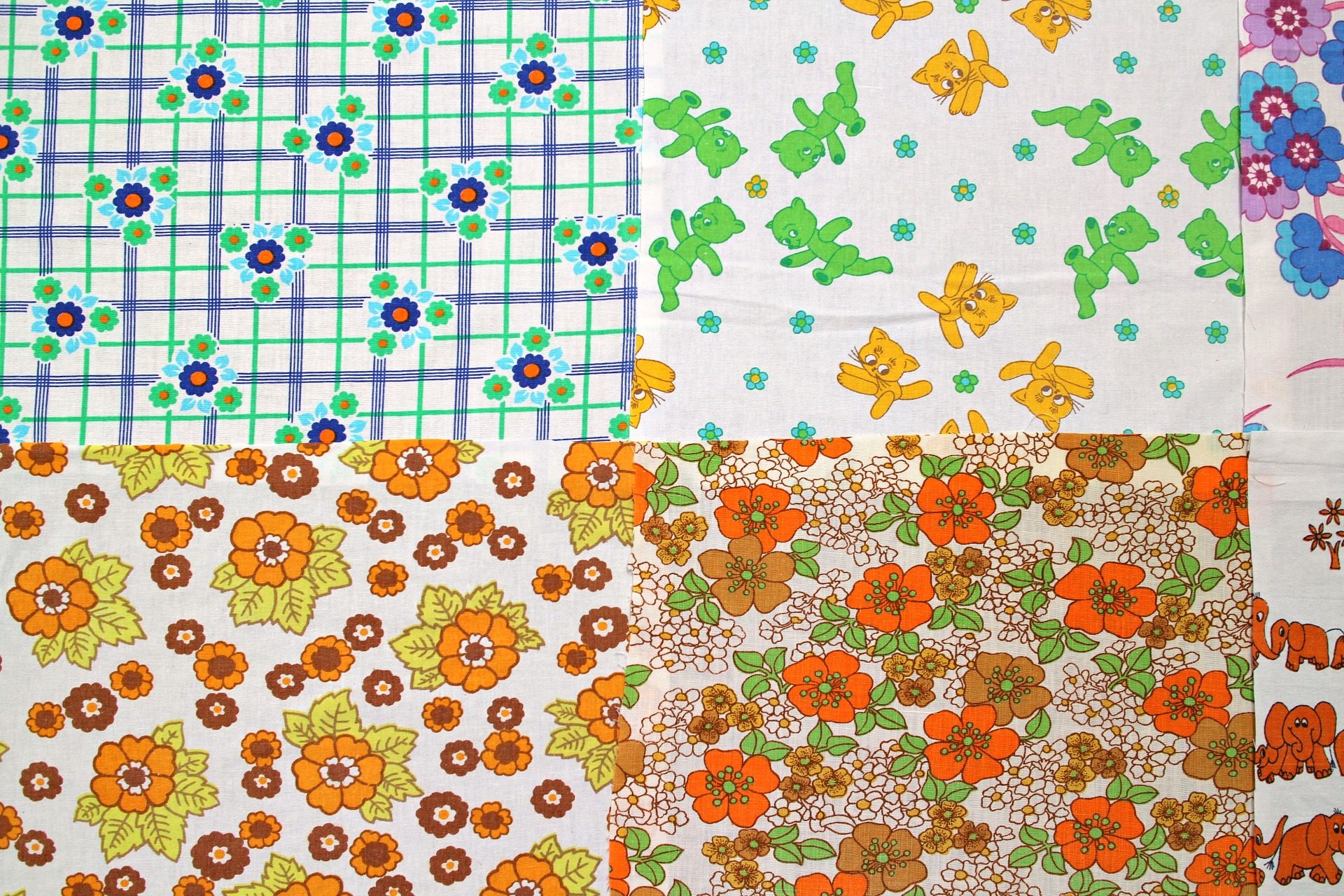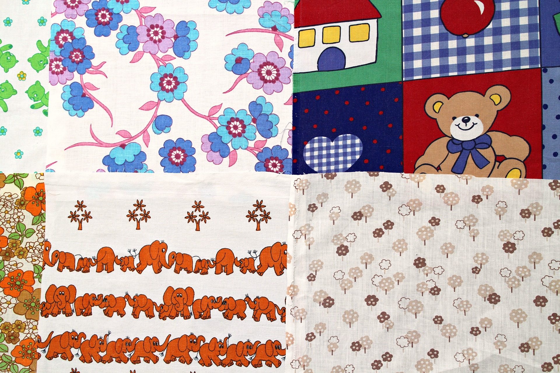 レトロの定番花柄のほか象の群れやテディベア・猫など人気のパターンばかりを集めたヴィンテージカットクロスセット。