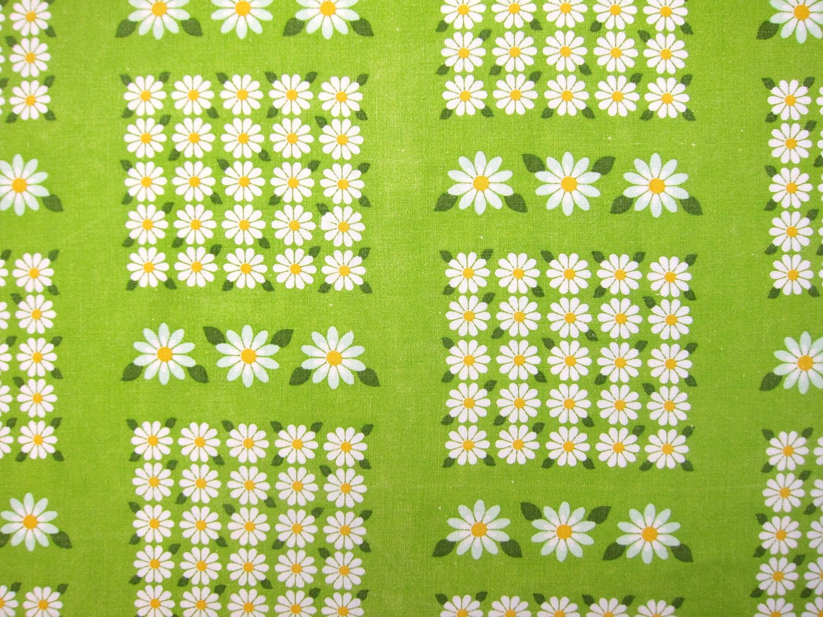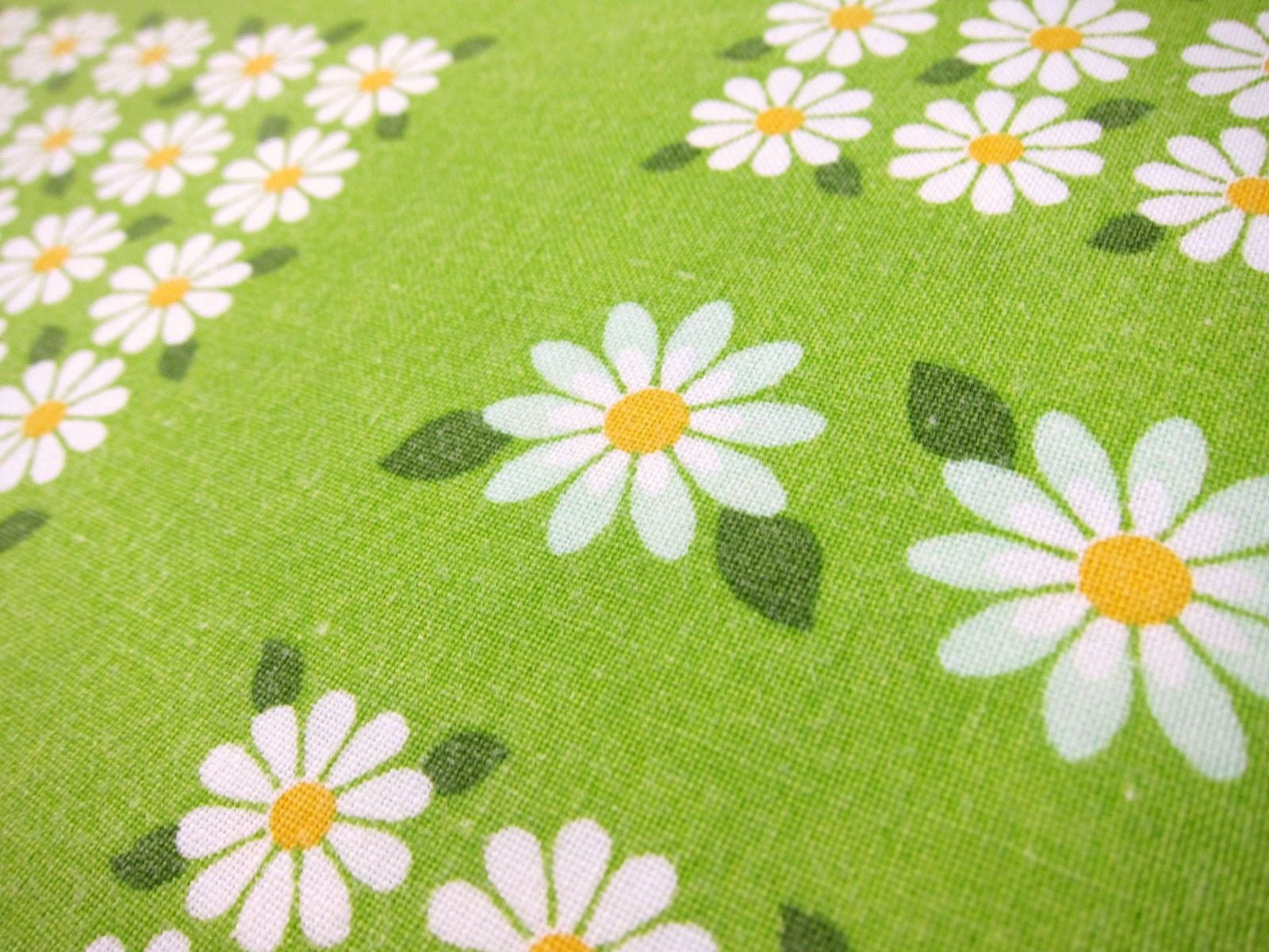 優しい印象の黄緑色をした花柄ヴィンテージ布 幅130cm