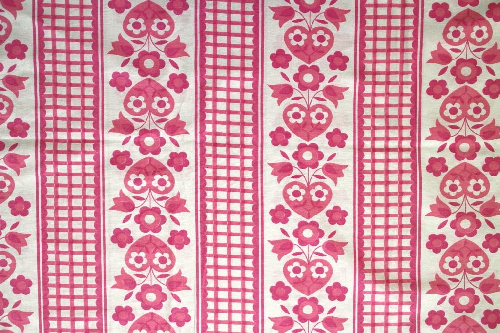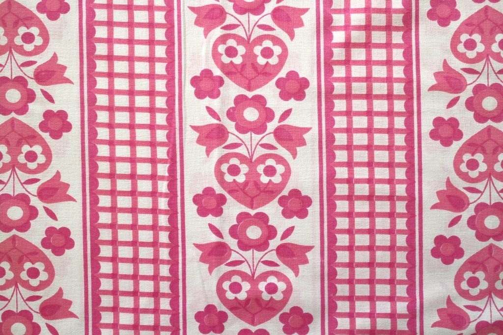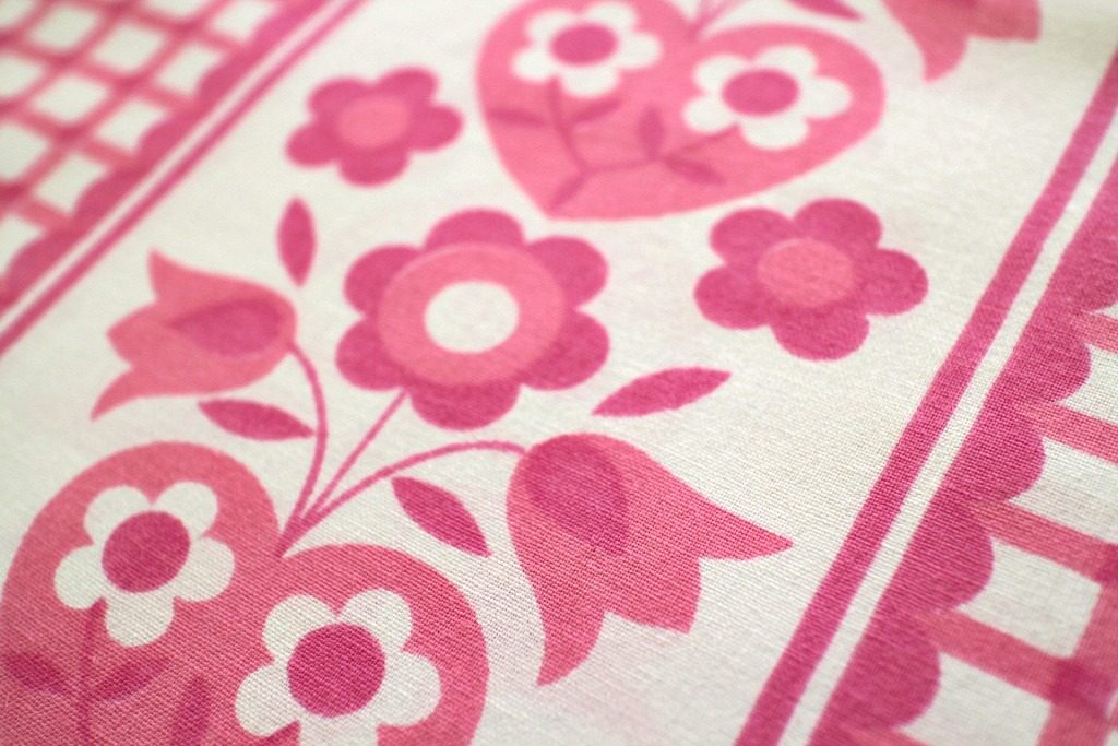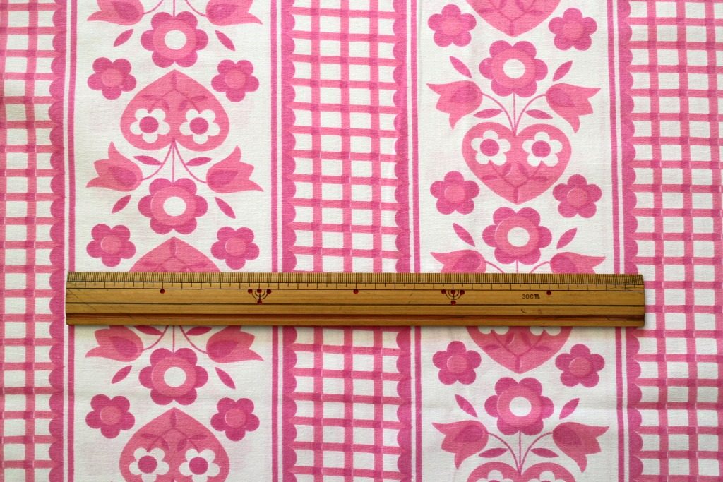 コンテンツにスキップ白地にピンクの花モチーフ&格子模様が入ったレトロガーリーなヴィンテージファブリック。
