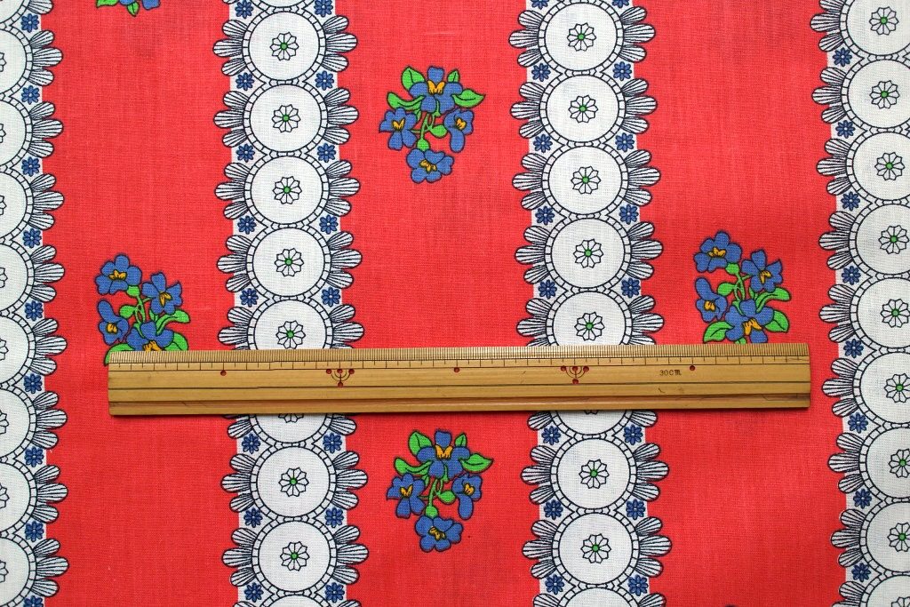 コンテンツにスキップお花がモチーフとなったリボンが並べられた、気品漂う赤色デッドストックファブリック。