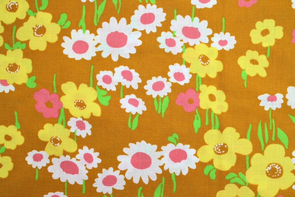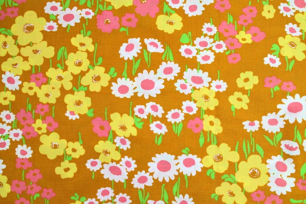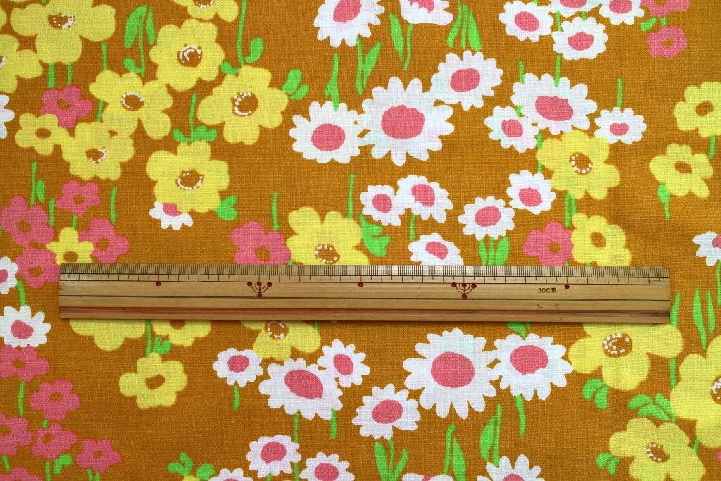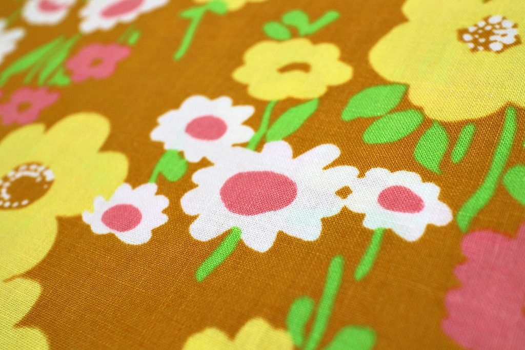 ピンク・白・黄色のお花が無造作に咲いた優しいお花畑柄ヴィンテージ生地。