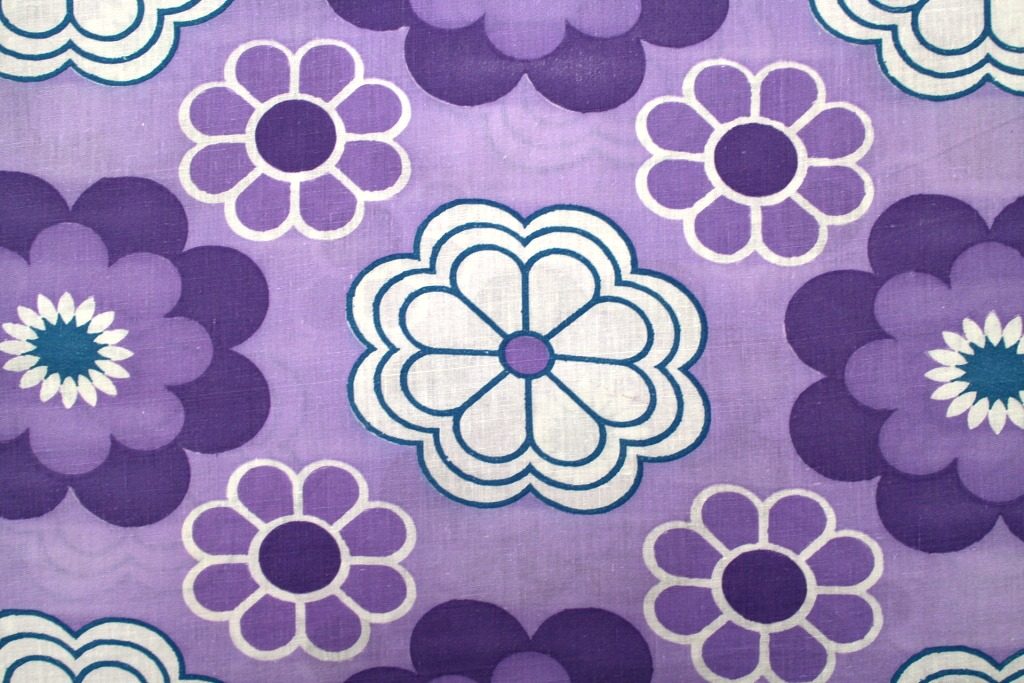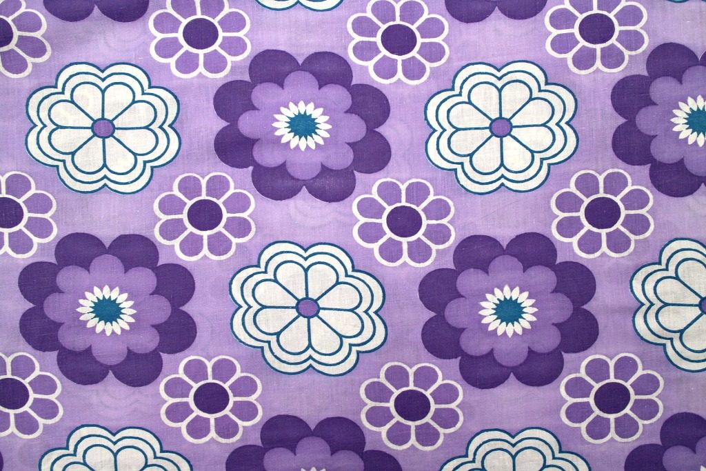 大きなレトロな花のモチーフ パープルのヴィンテージファブリック 幅58cm