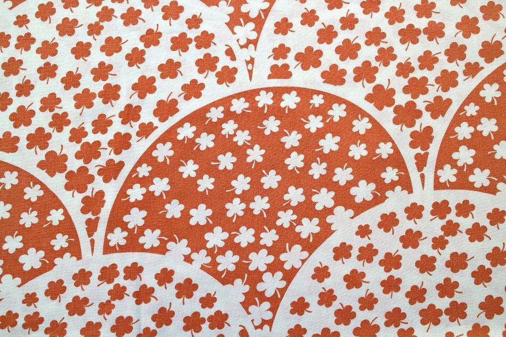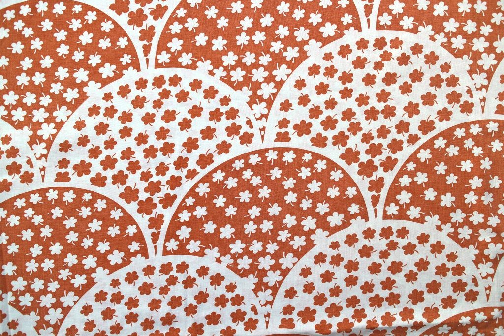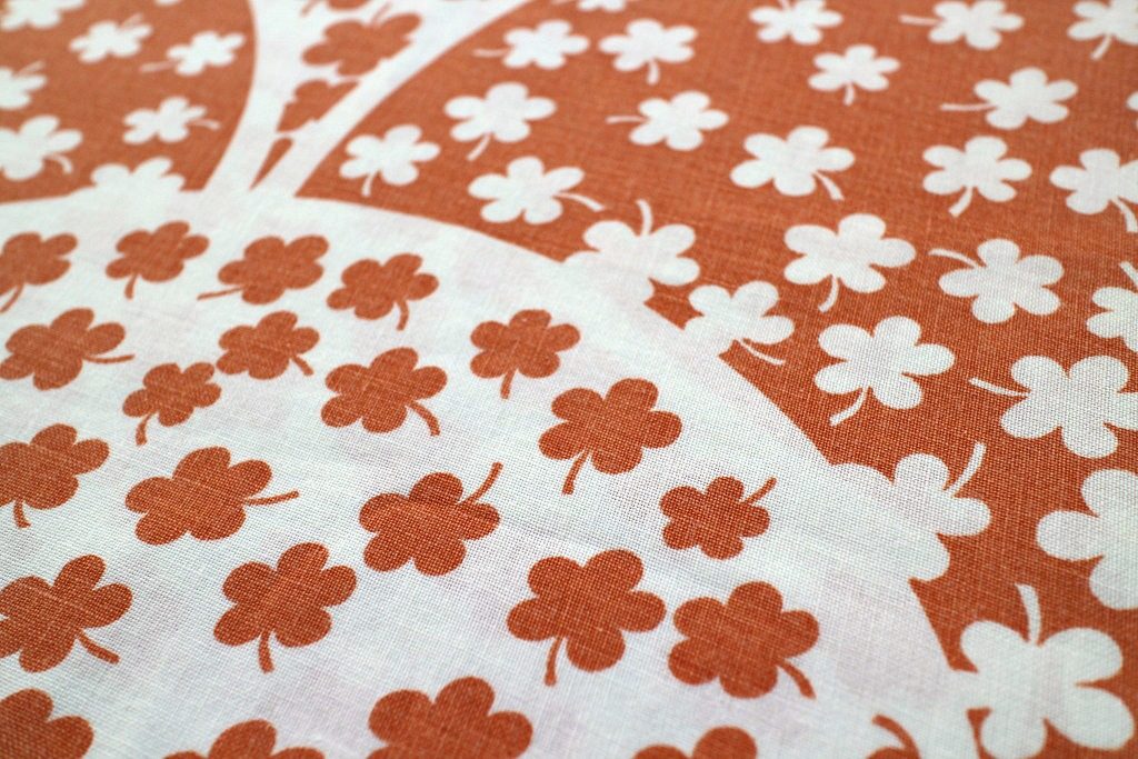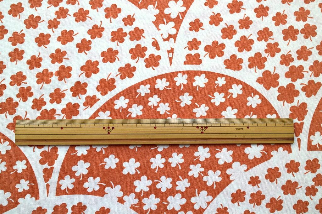 コンテンツにスキップ手のひらをいっぱいに広げたほどのサイズのお花の扇がうろこ状に並んだ、ノスタルジー感いっぱいのコットン製レトロ布。