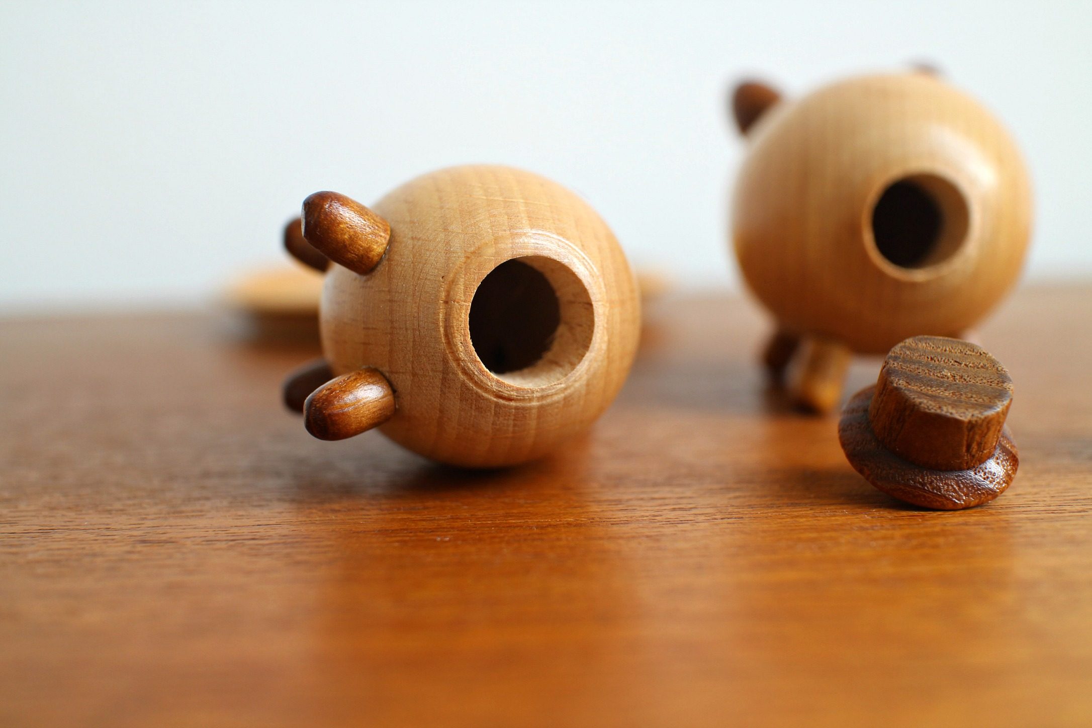 大小のブタさん型木製ヴィンテージ調味料入れ(未使用品)