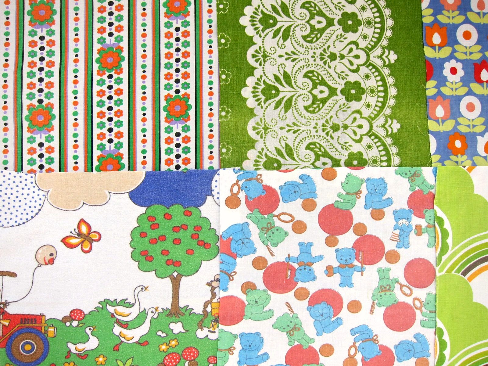 キュートな子供柄、レトロな花柄、お洒落でクールな幾何学模様などのヴィンテージファブリックたち。