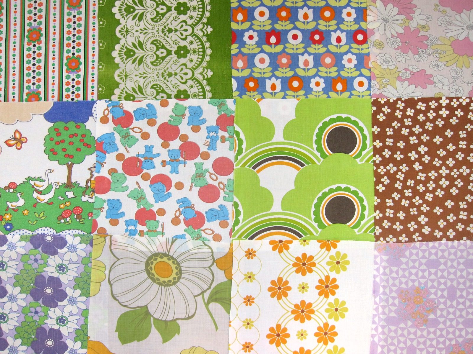 子ども柄・花柄 ヴィンテージはぎれセット12枚入り
