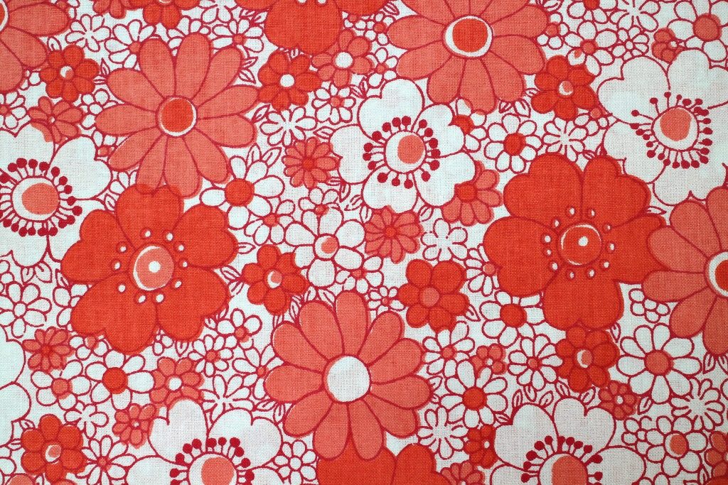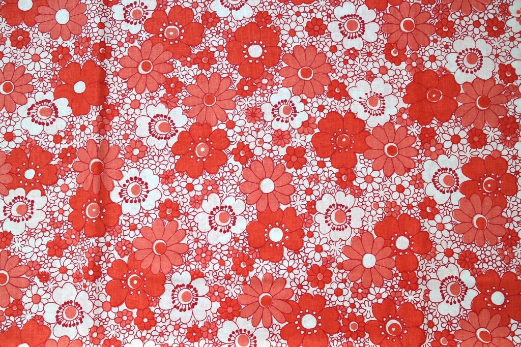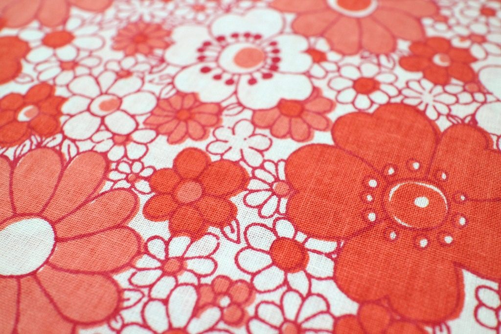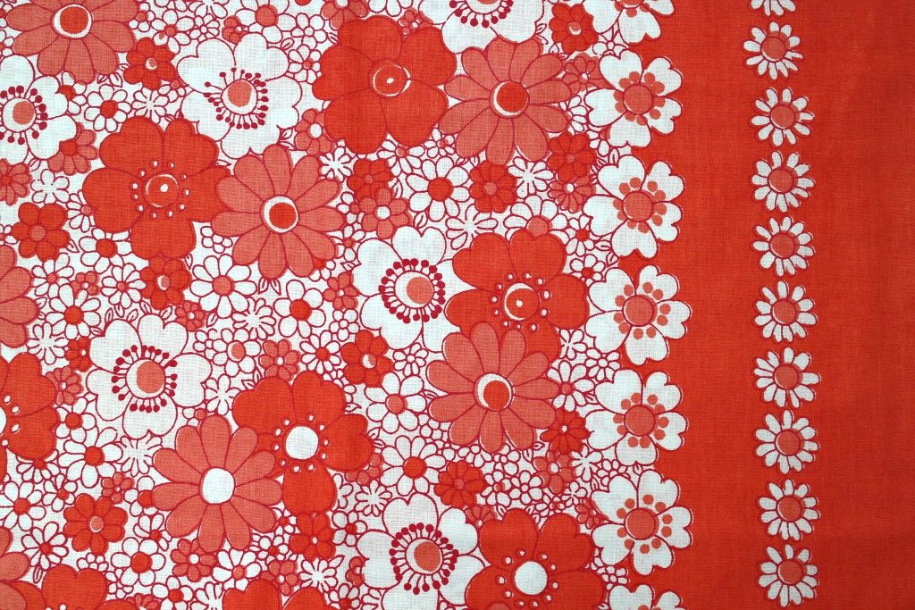 お花の宝石箱をひっくり返したような、キラキラとした躍動感のある花模様のレトロ生地。