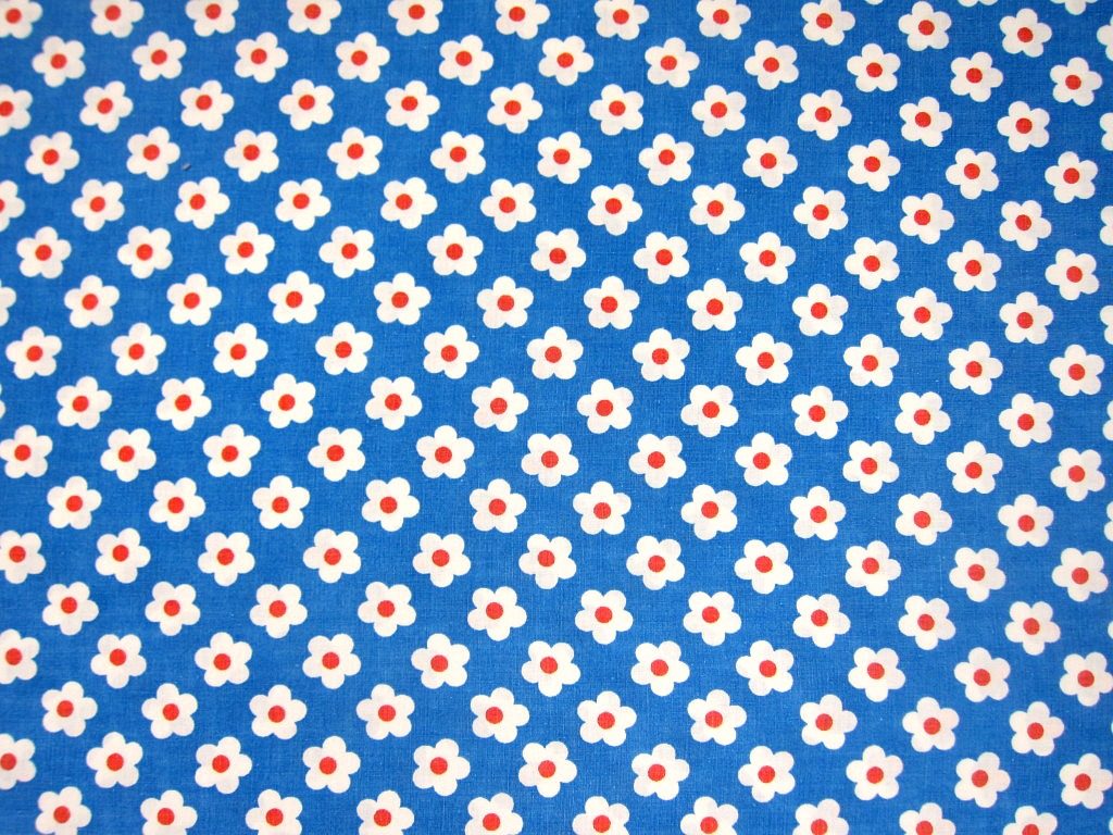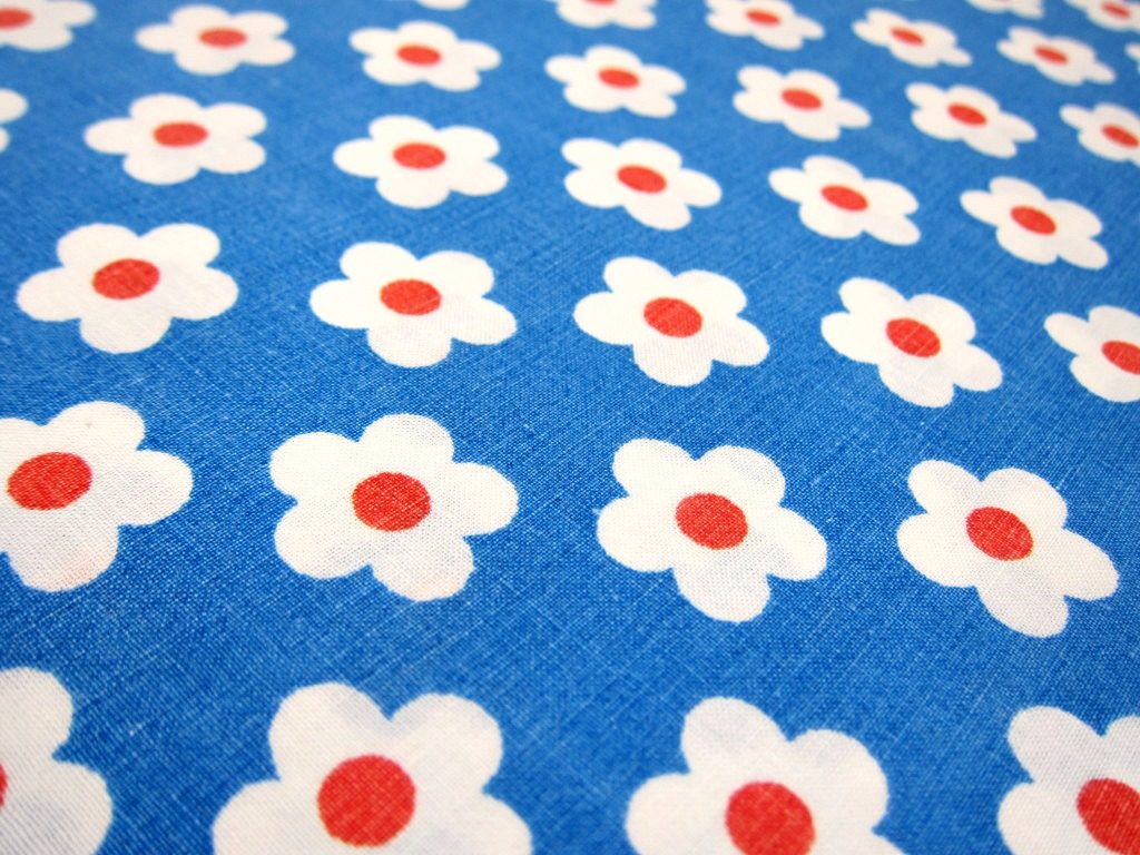 小柄な花のモチーフ 青いヴィンテージファブリック 幅92cm